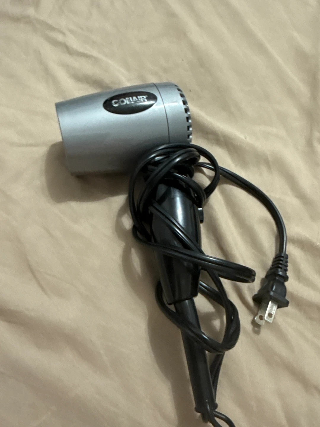 Selling a Conair compact hair dryer! It's in great condition and perfect for travel or everyday use. It's silver in colour and easy to store. Let me know if you're interested!