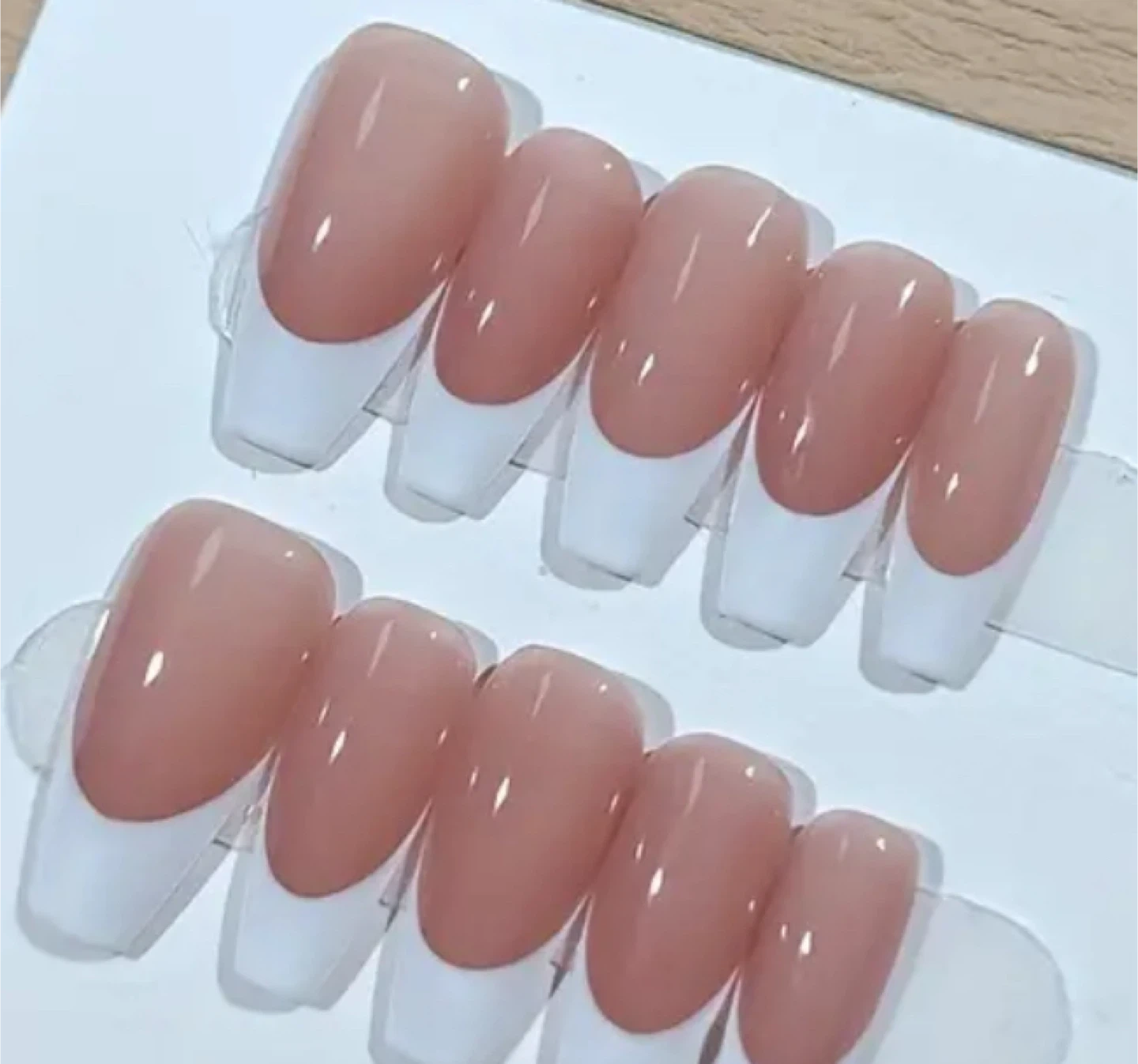 Selling a set of brand new French tip press-on nails! These nails are a classic design and ready to be applied for a quick and easy manicure at home