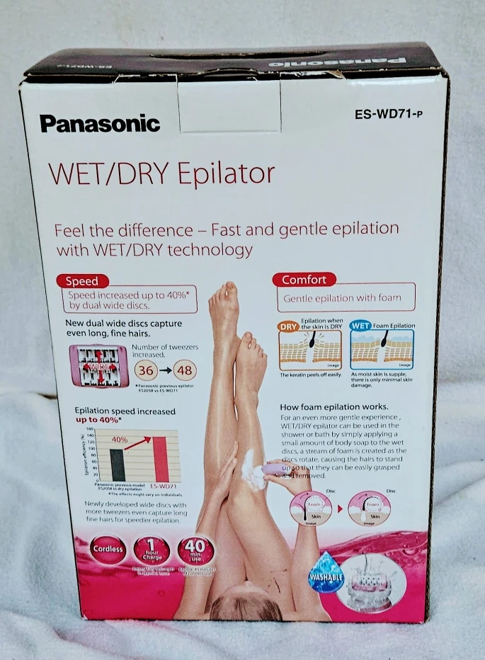 This Panasonic ES-WD51-P Ladies Wet/Dry Epiglide Epilator is new and its in mint manufactured sealed.