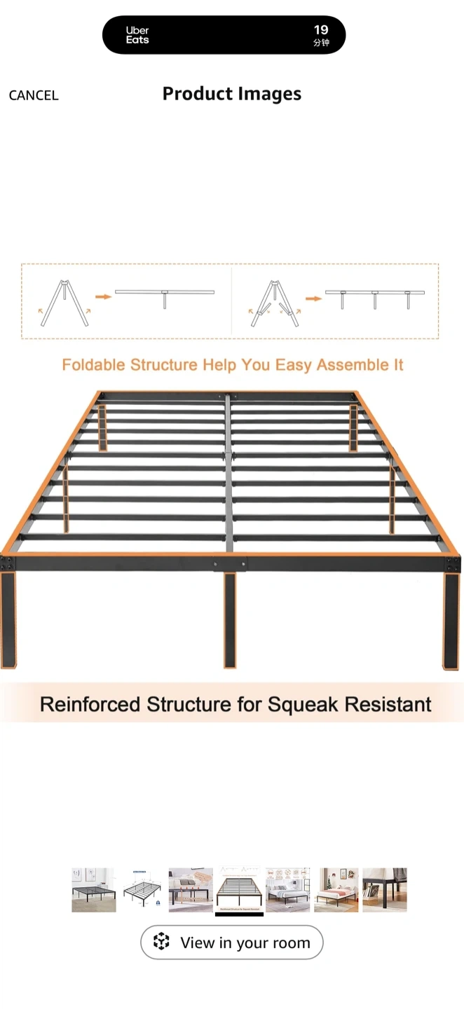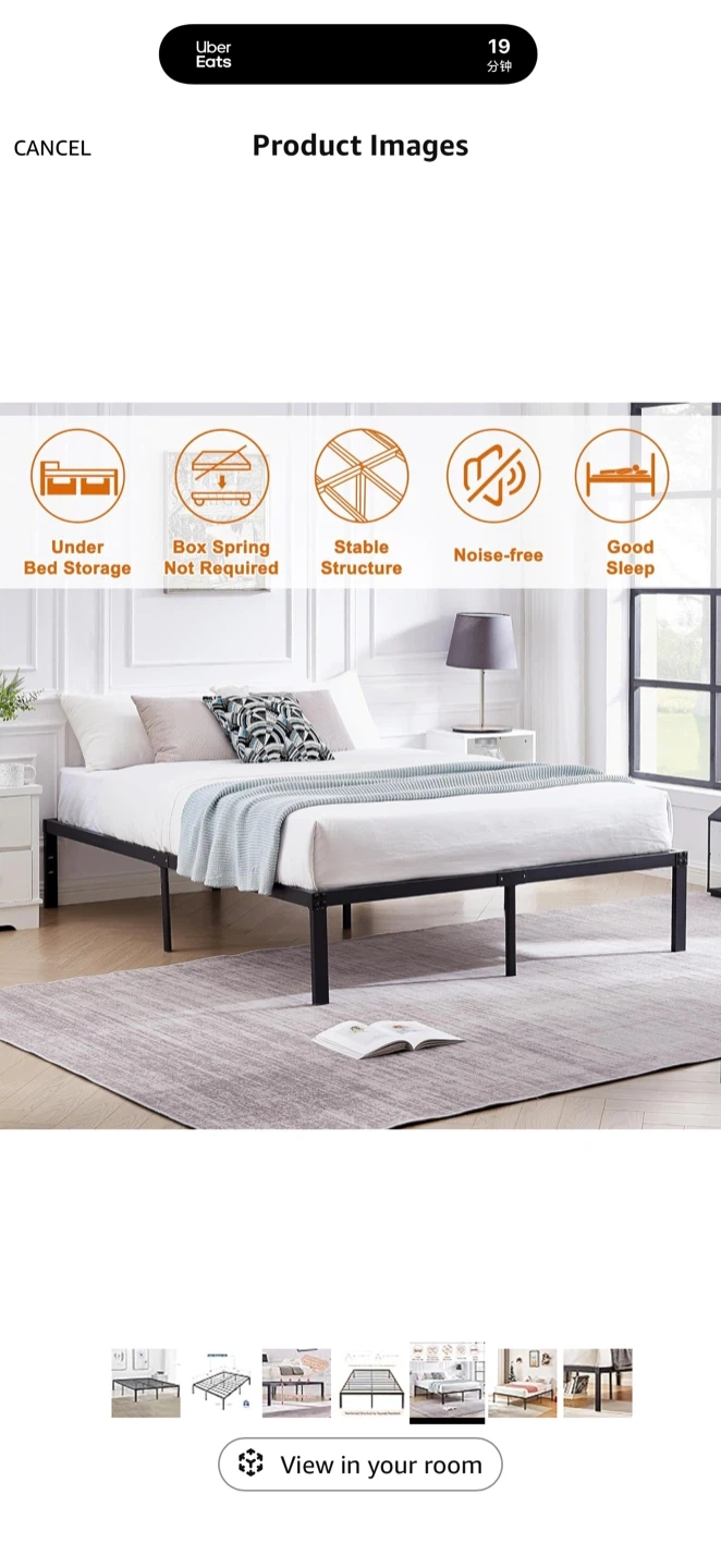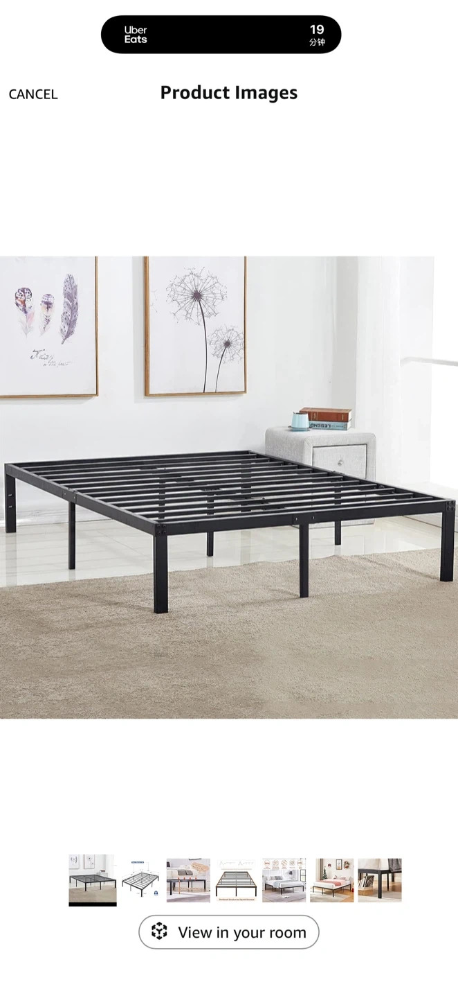 Selling a queen size metal bed frame. It has a reinforced structure that's squeak-resistant, so you can get a good night's sleep! It also has under-bed storage and doesn't require a box spring. The frame is black and can hold up to 660 lbs. Easy to assemble!