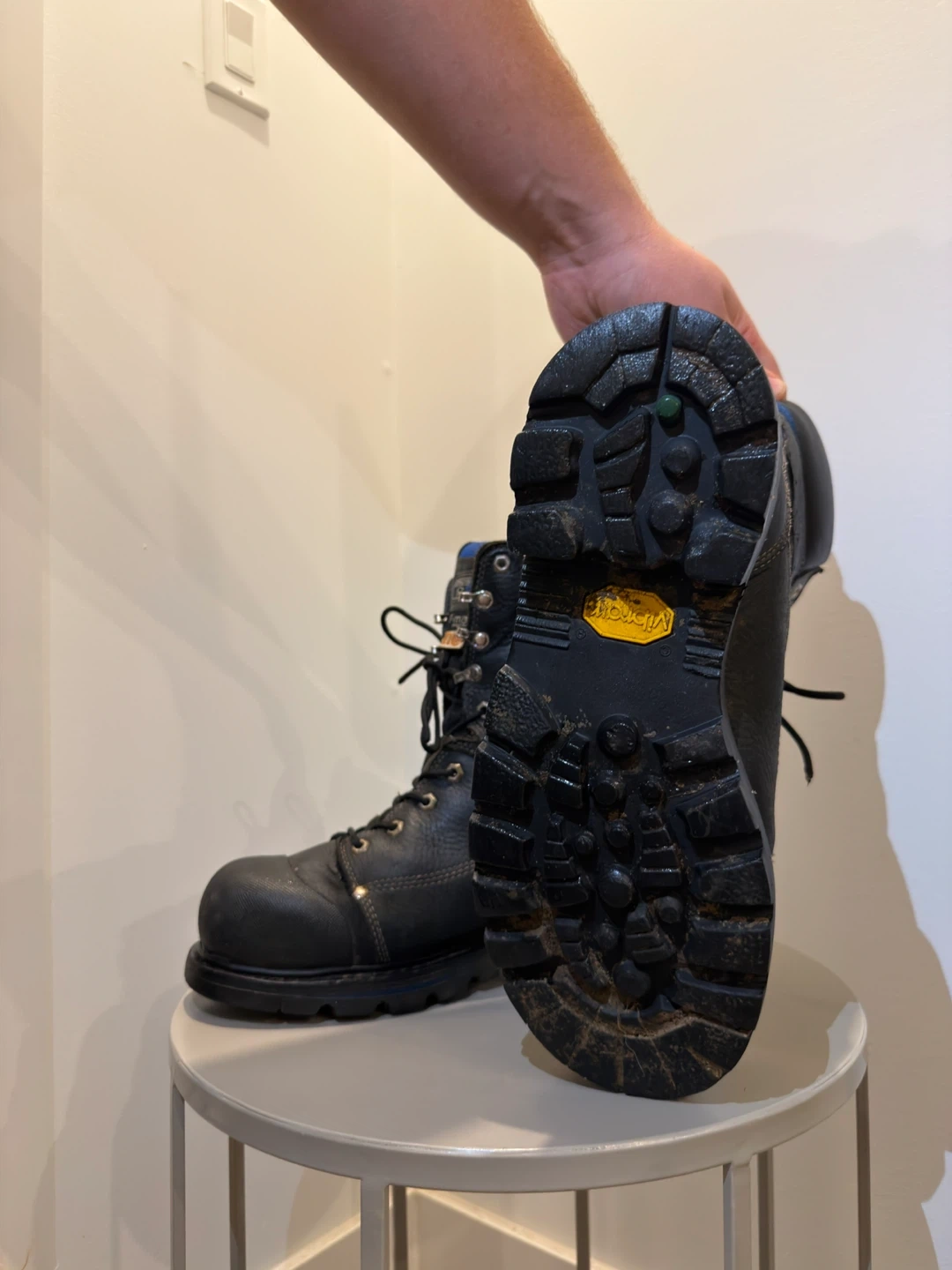 Selling a pair of Dakota T-Max work boots in size 10.5. They're in good condition and ready for a new job site. The soles have a Vibram logo. These boots have served me well!
