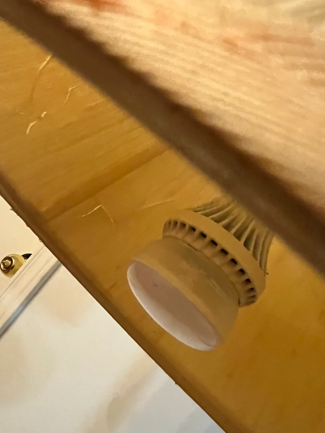 Selling a floor lamp with a gold finish. It has a beige lampshade and would be a great addition to any living room or bedroom. There are some signs of use on the pole.