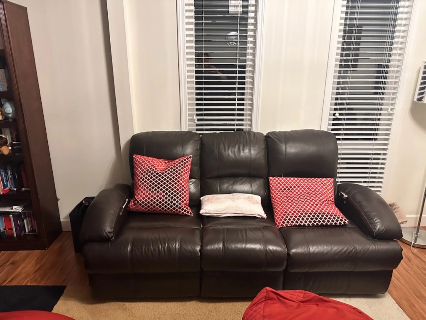 Selling a comfy brown leather reclining sofa. It's perfect for relaxing after a long day! The sofa has a classic look and is in good condition. It would be a great addition to any living room or den