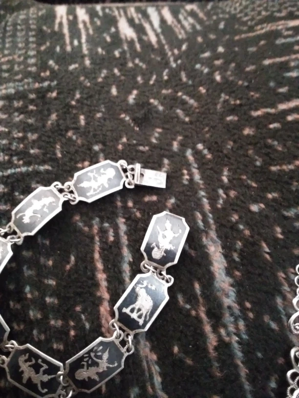 Selling a vintage Siam sterling silver bracelet! It features detailed panels with traditional Thai figures and animals. The clasp is marked 'Siam Sterling'. A unique piece to add to your collection!