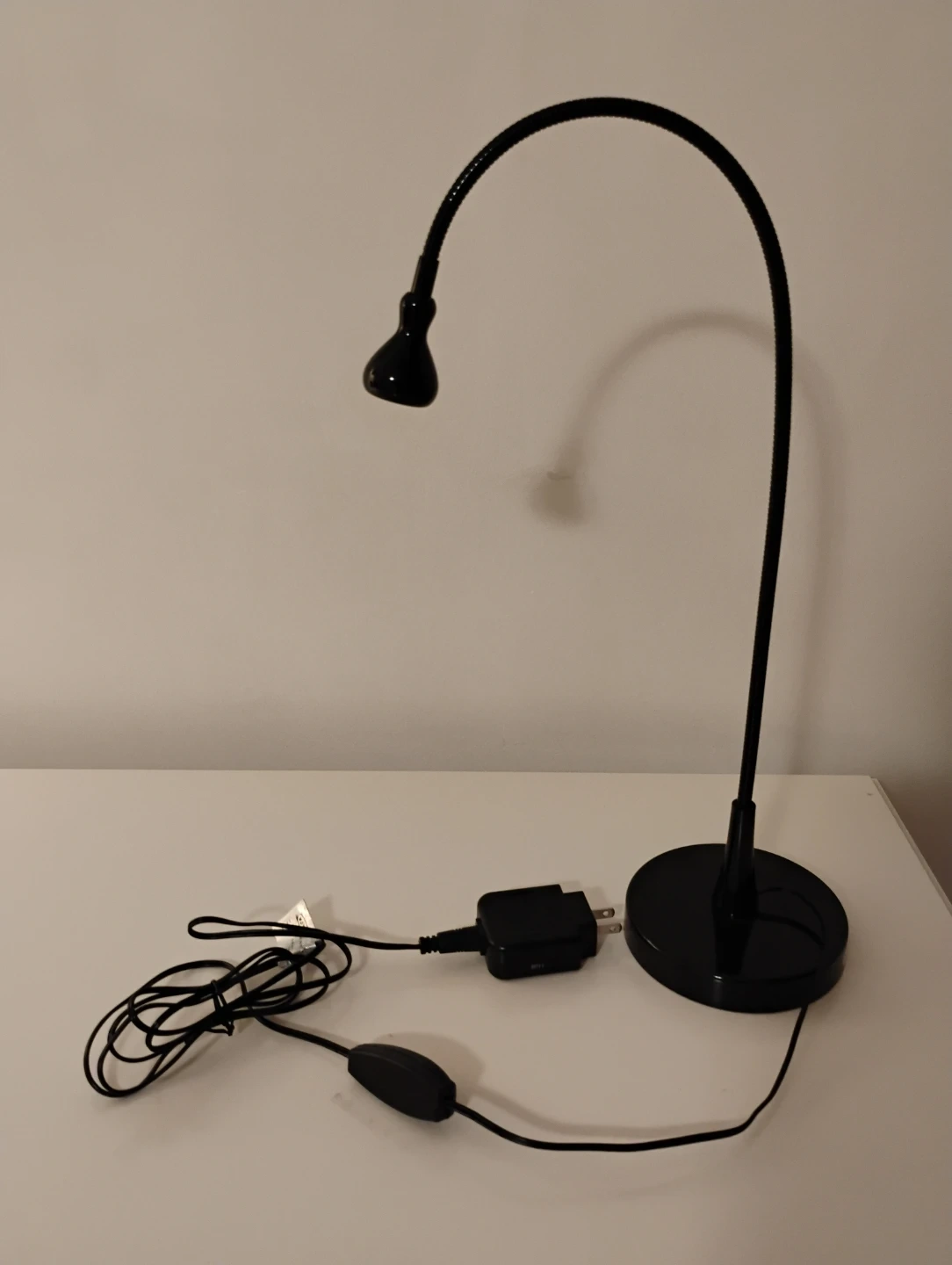 IKEA JANSJO Flexible Gooseneck Desk Lamp. Long flexible gooseneck allows you to point the light in any direction you want. Comes with wall plug instead of the USB version currently sold in stores.