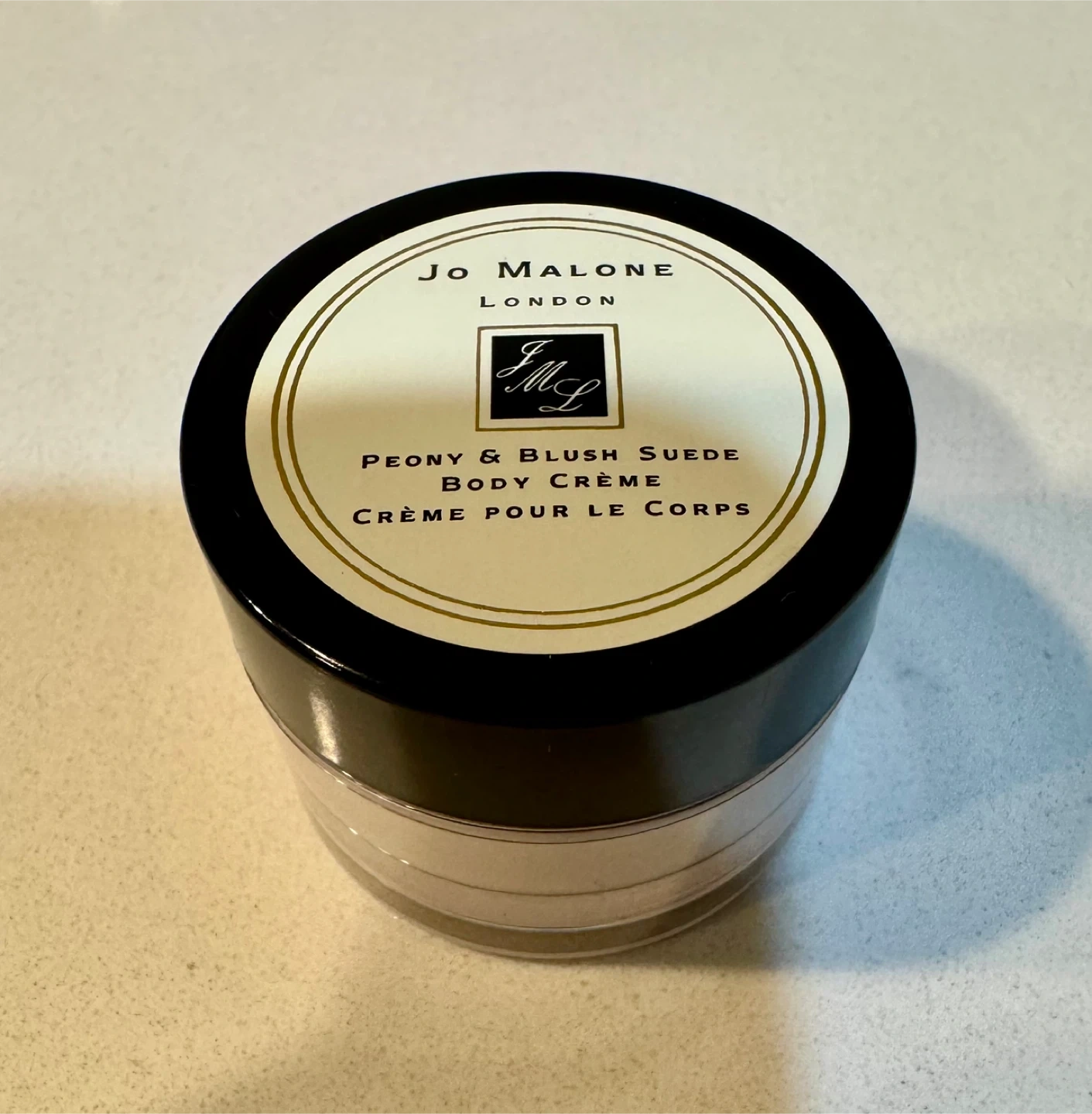 Selling four mini Jo Malone Peony & Blush Suede Body Crèmes. Each jar contains 15ml of the body crème, perfect for traveling and daily used! This body crème is super luxurious and smells amazing. Super suitable for holiday season and it is a best gift for your best friends or families!