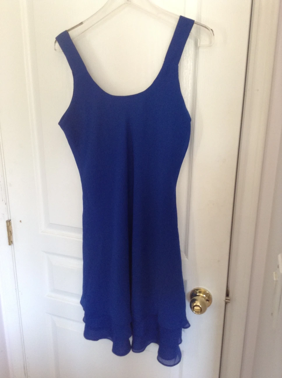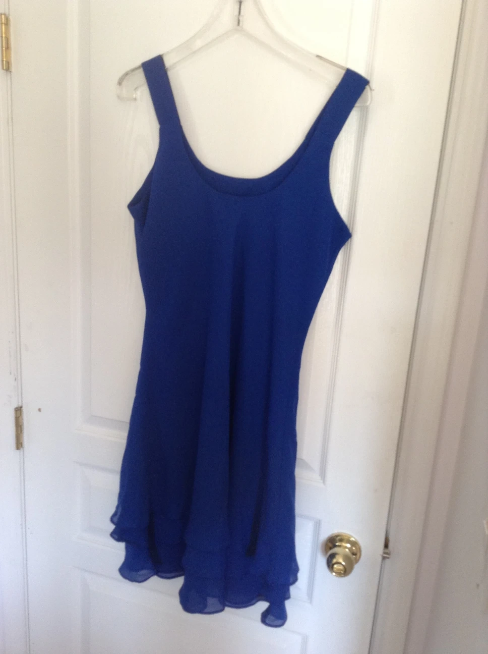 Blue satin Sundress is new and in great condition. i bought that dress for my friend but it didn't fit her. Size 13/14