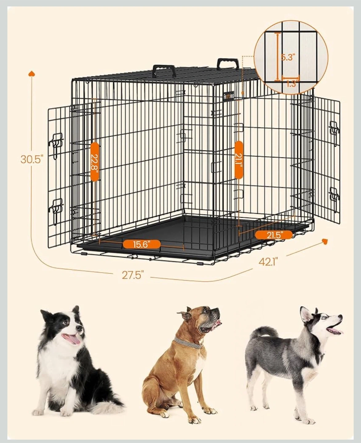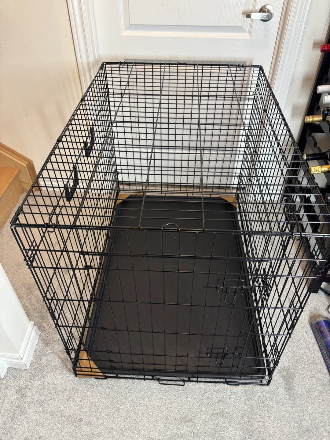Selling a Feandrea dog crate in excellent condition! It's an XL size (42.1-inch) and foldable for easy storage. It has two doors and a removable tray. Available for pickup and delivery