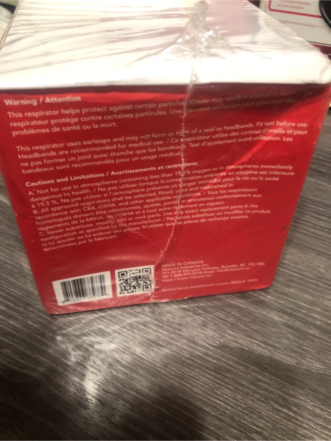 I'm selling a brand new, in-box Vitacore CAN95e particulate respirator! These masks are made in Canada and offer ≥95% filtration. The box contains 30 masks. Perfect for keeping safe and protected!