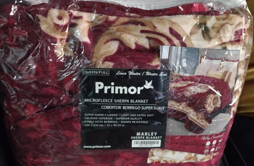 Selling a brand new Primor Microfleece Sherpa Blanket, perfect for the winter season! This Queen/Full size blanket is incredibly soft and lightweight. The dimensions are 200 x 230 cm, which translates to approximately 79 x 90.55 inches. It's a Marley Sherpa Blanket and comes in its original packaging
