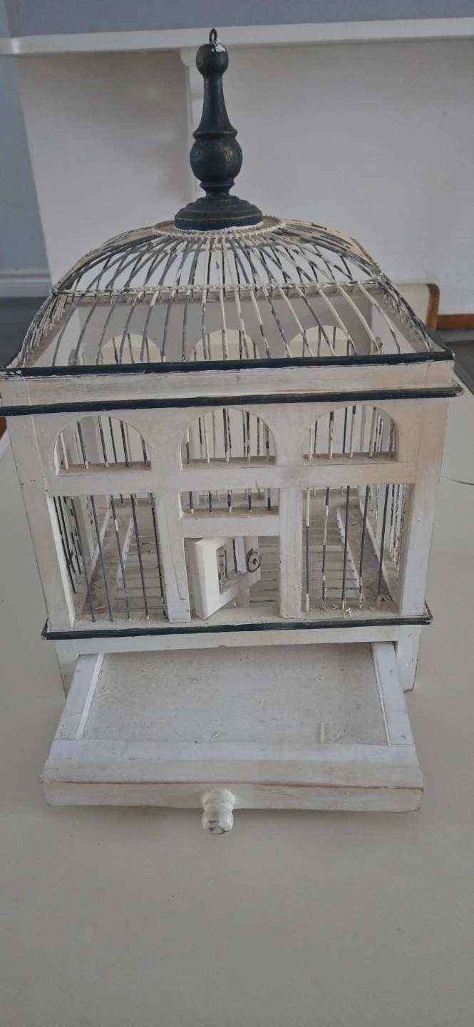Here's a charming decorative bird cage, perfect for adding a touch of vintage style to your home decor! It's in great condition and would look lovely as a centrepiece or accent piece