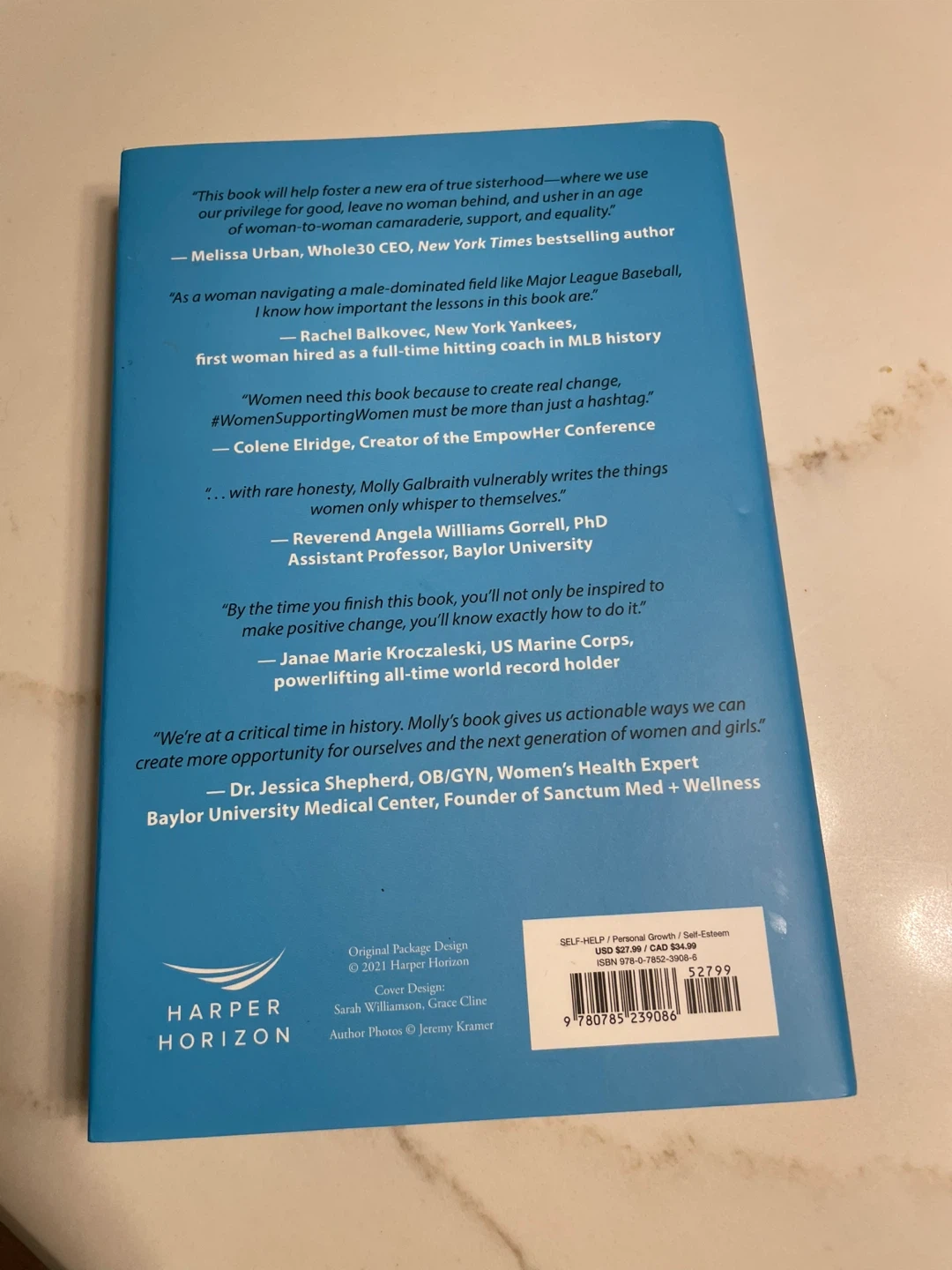 Selling the book 'Strong Women Lift Each Other Up' by Molly Galbraith! It's a self-help book that encourages female empowerment and camaraderie. A great read for anyone looking for motivation and support