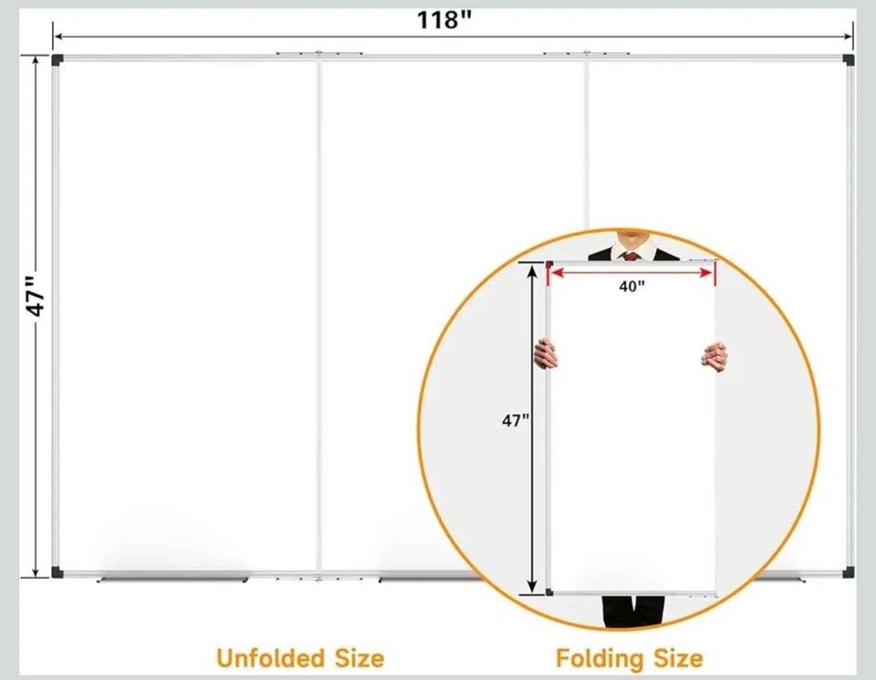 Overall Size (frame included): 118" x 47.2", comes with pen tray and fixing kits for added convenience. Good assistant to business professional, project manager, clerk, teacher, parent and student etc.