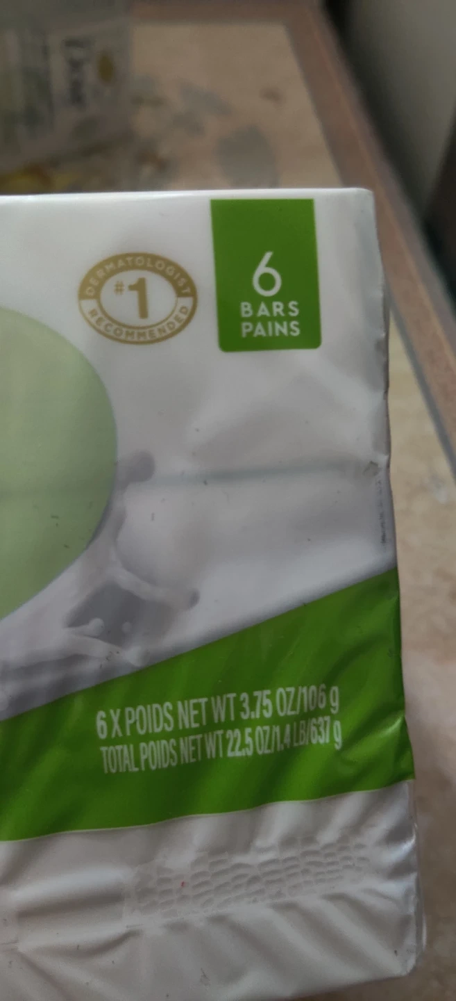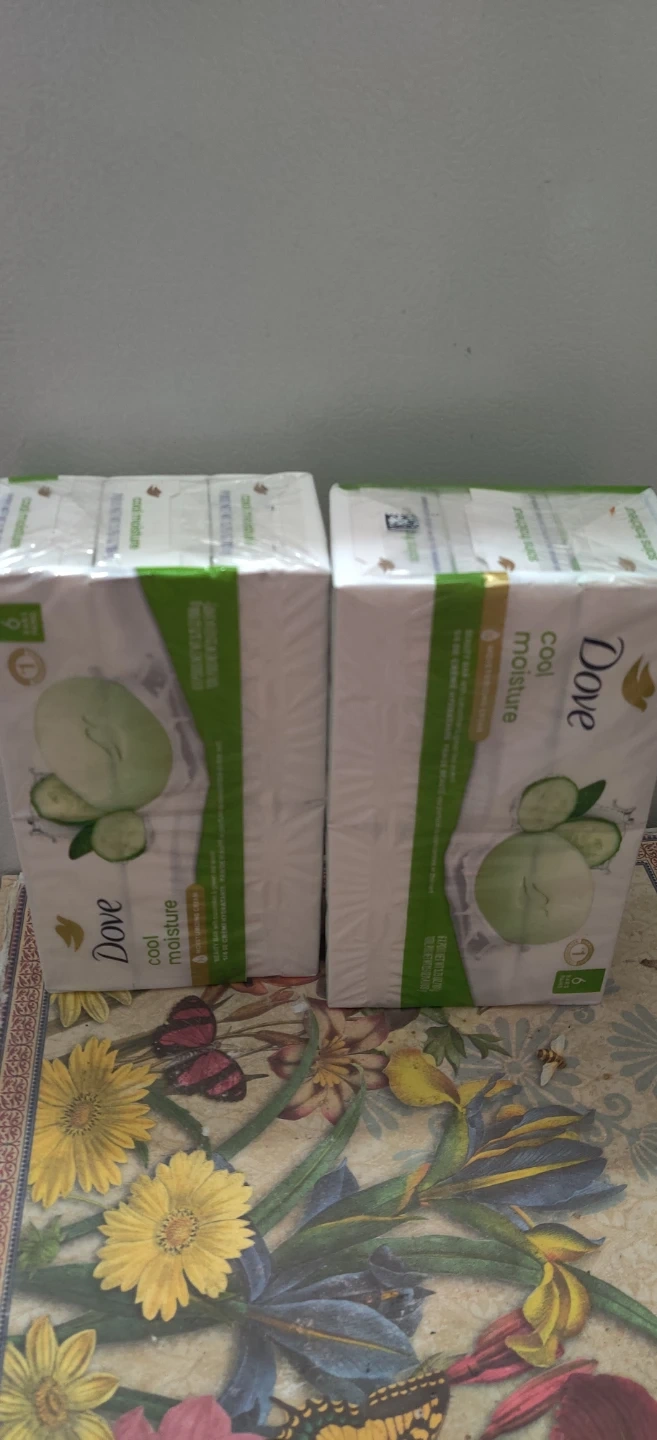 Selling 2 - 6-pack of Dove Cool Moisture beauty bars! These bars have a refreshing cucumber and green tea scent. Each bar is a moisturizing cream that's 1/4 de creme hydratante. Total weight is 22.5 oz / 1.4 lb / 637 g