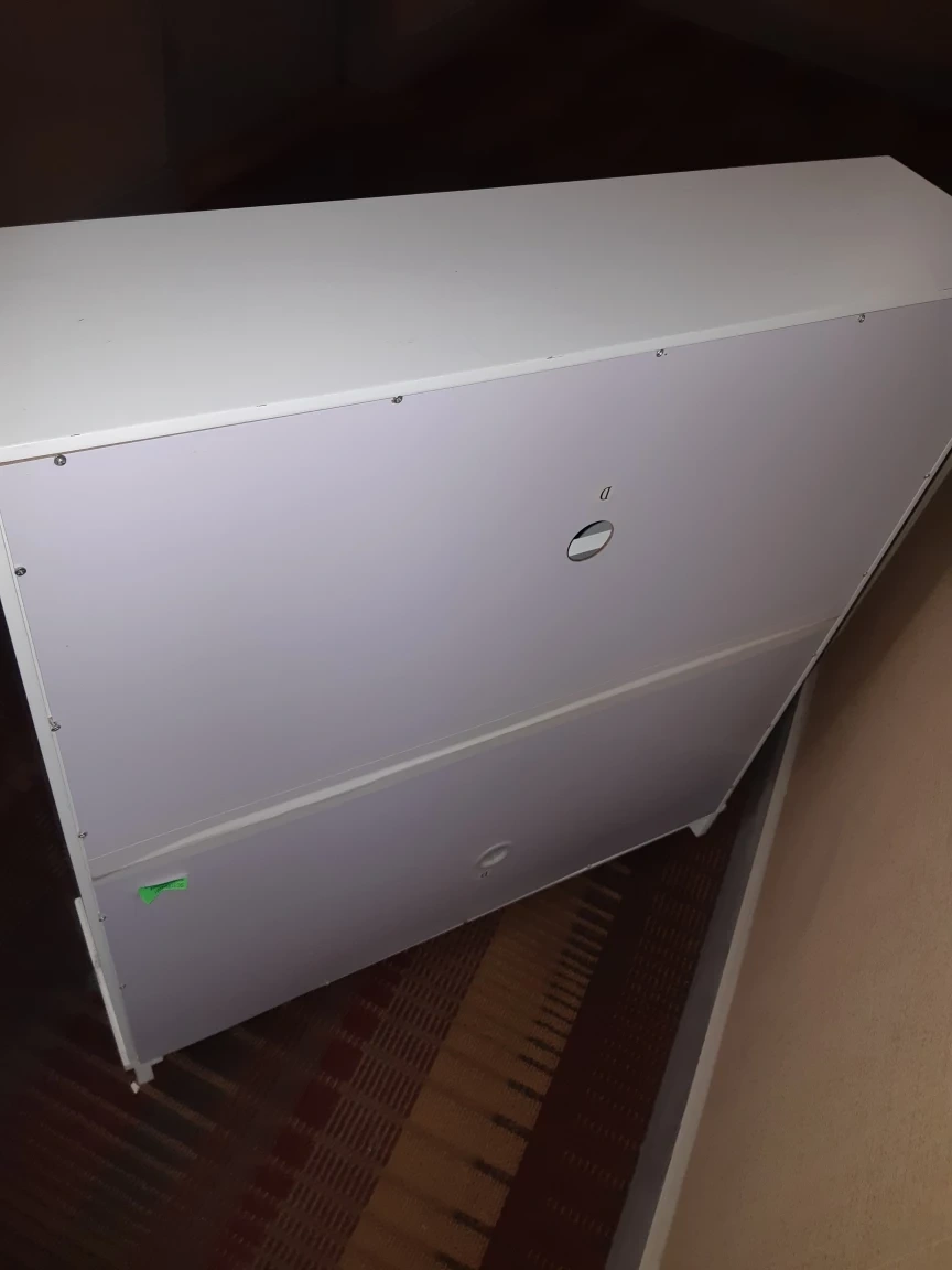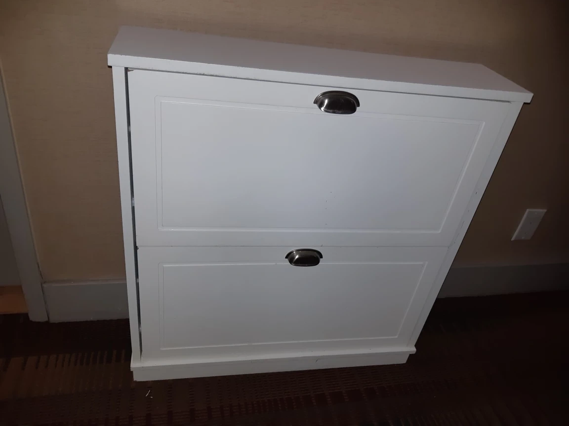 Selling a white shoe cabinet! It has two shelves and is in good condition. Perfect for keeping your entryway tidy and organized