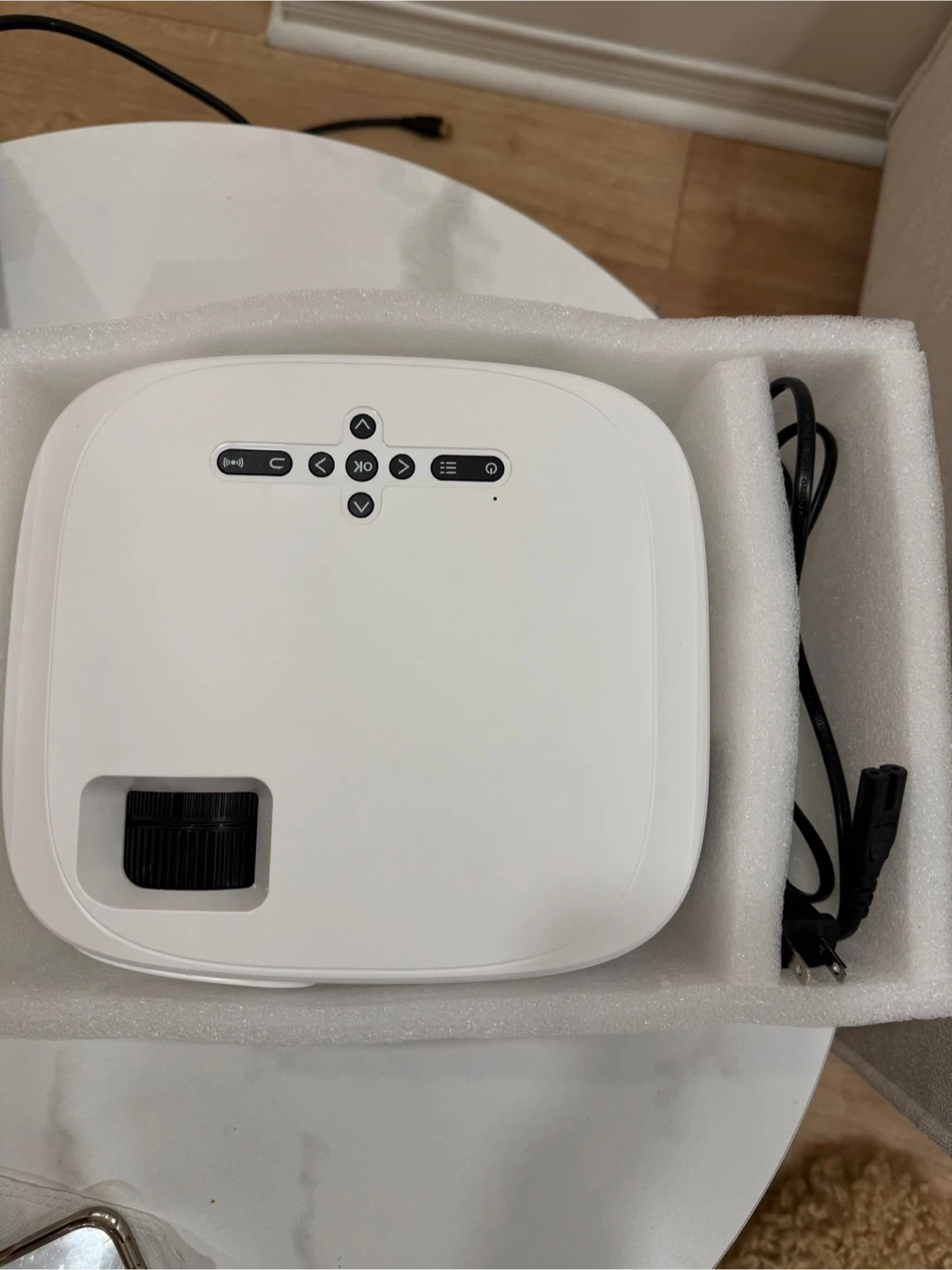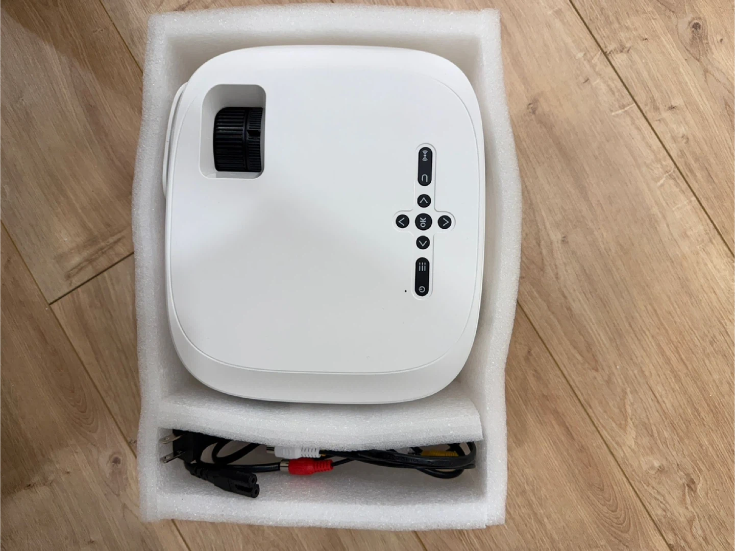 Selling an LED projector, Model F5. It comes with a 100" projector screen and bag. The projector supports 4K, HD 1080P Native, WIFI 5G, and Bluetooth 5.1. It also comes with its original box