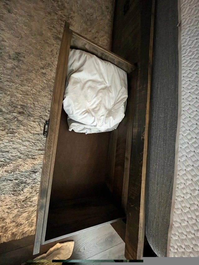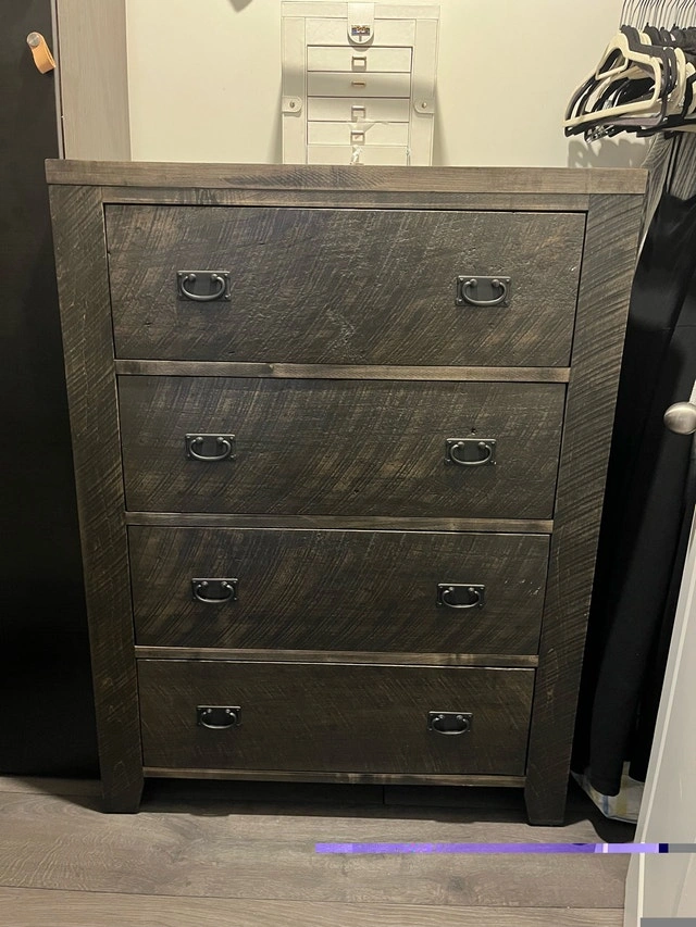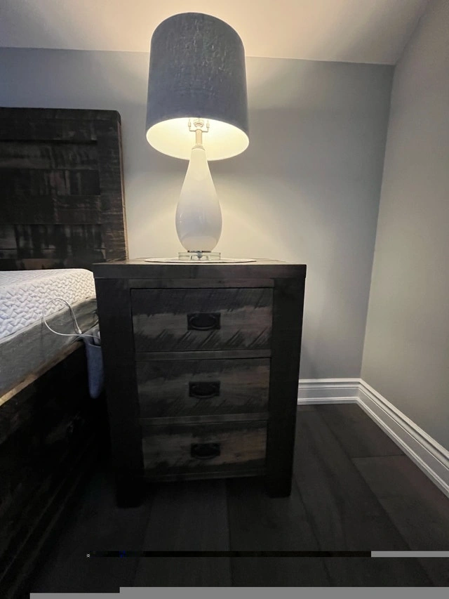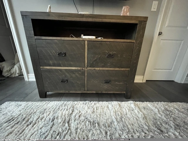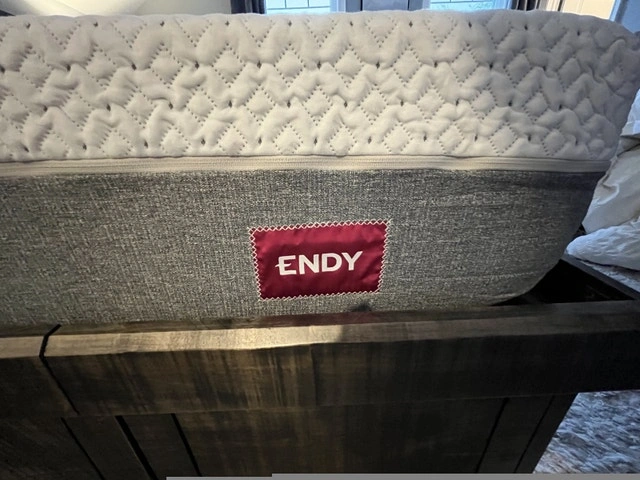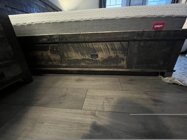 Beautiful Mennonite solid maple wood bedroom suite purchased at Halton Homestead (Steeles and Winston Churchill). Moving to an apartment and this beautiful set will not fit. Includes: Highboy 4 drawer dresser, platform condo bed with 6 drawers, 2 side tables, dresser with top TV shelf, King Endy mattress in excellent condition and always protected with an Endy mattress protector. Lamps not included. This suite is beautifully handcrafted and solid. Dimensions included in the invoice attached. You will need to pick up and recommend bring help as it is heavy. CROSS LISTED
