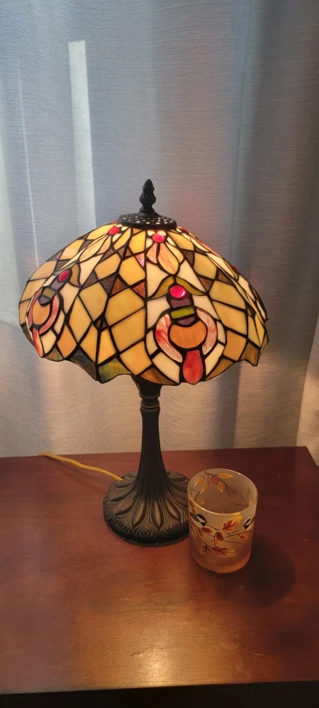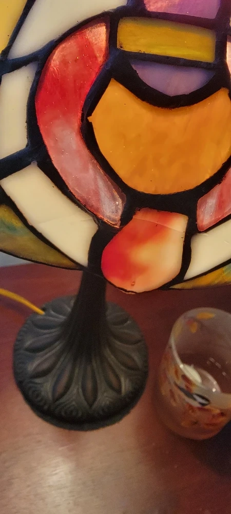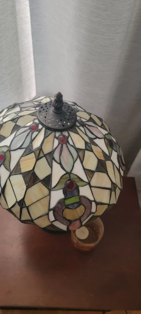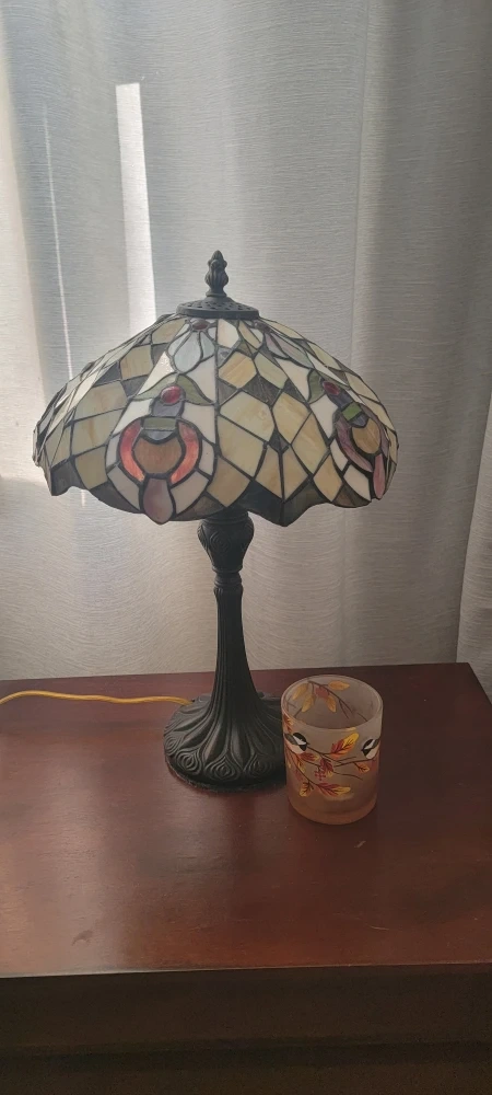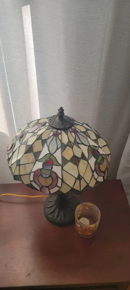 Selling a beautiful Tiffany style table lamp! It has a lovely stained glass shade with intricate patterns and a bronze-coloured base. It's in great condition and would add a touch of elegance to any room