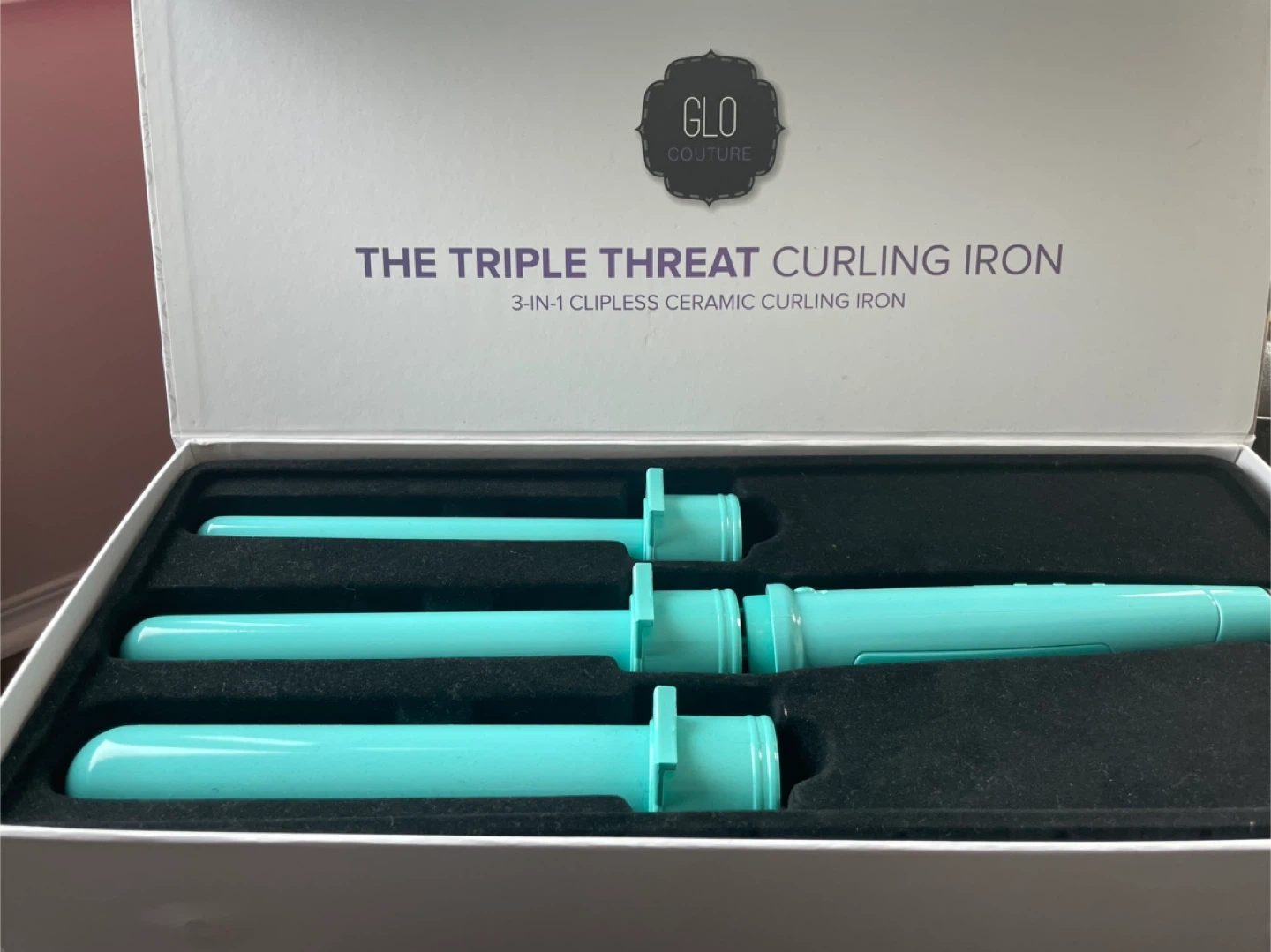 Selling a brand new GLO Couture The Triple Threat Curling Iron! It's a 3-in-1 clipless ceramic curling iron. The box includes the curling iron and three different sized barrels: 19mm, 25mm, and 32mm. Also comes with a heat-resistant glove to keep your hands safe while styling