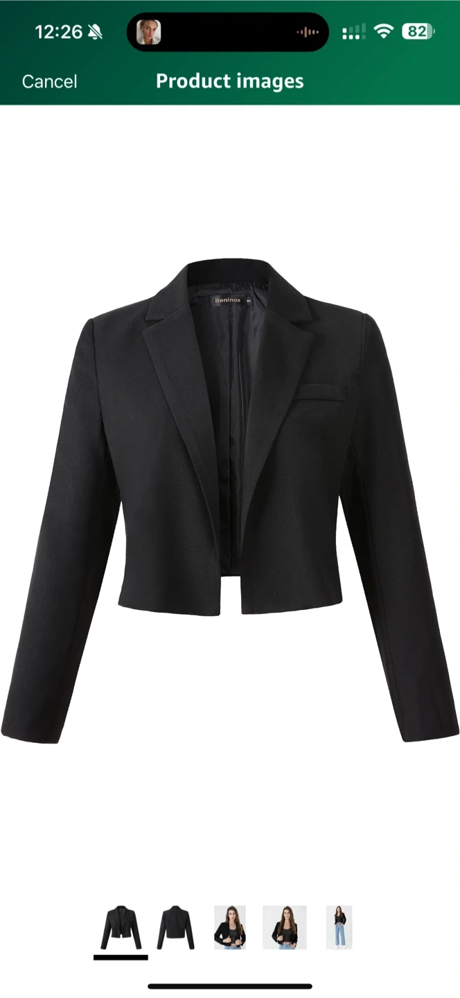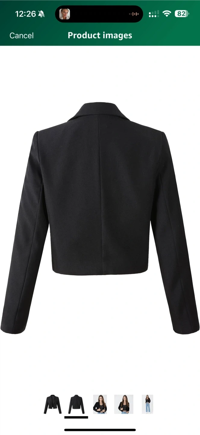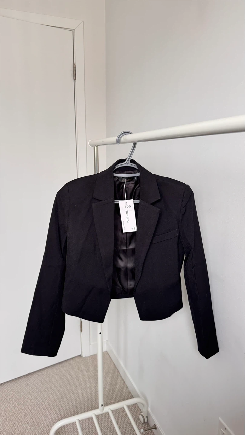 Selling a stylish Beninos cropped blazer in black! It's a size small and in great condition. Perfect for adding a touch of sophistication to any outfit. Check out the pictures!