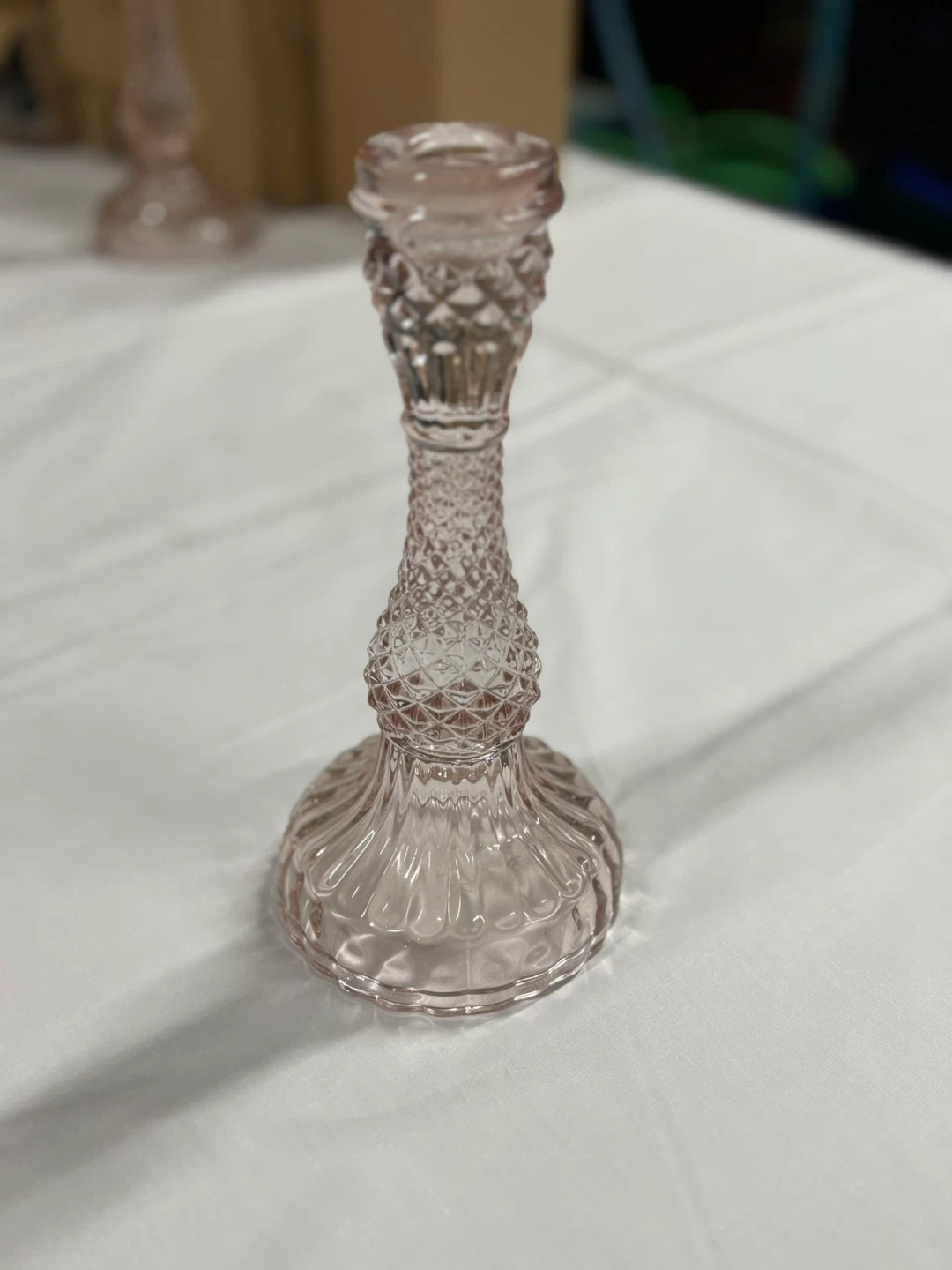 Selling a set of two Twilight Home candle holders. They're in great condition and would look lovely on any table or mantle. The set includes one taller and one shorter candle holder. The glass has a nice textured pattern to it!