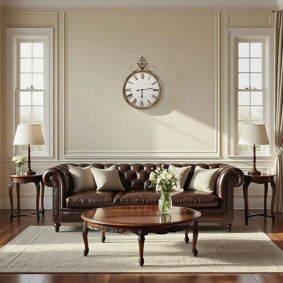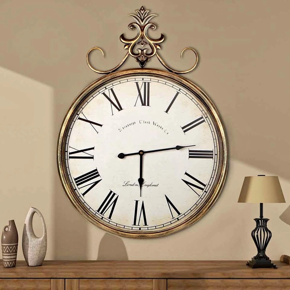This decorative wall clock is powered by one AA battery (not included). The clock uses a quartz movement to ensure reliable timekeeping. The case of this living room clock is made of metal. This wall clock is available in the sizes H 27.5 in x W 20 in x D 3 in and H 31.5 in x W 23.6 in x D 2.75 in. Number H27