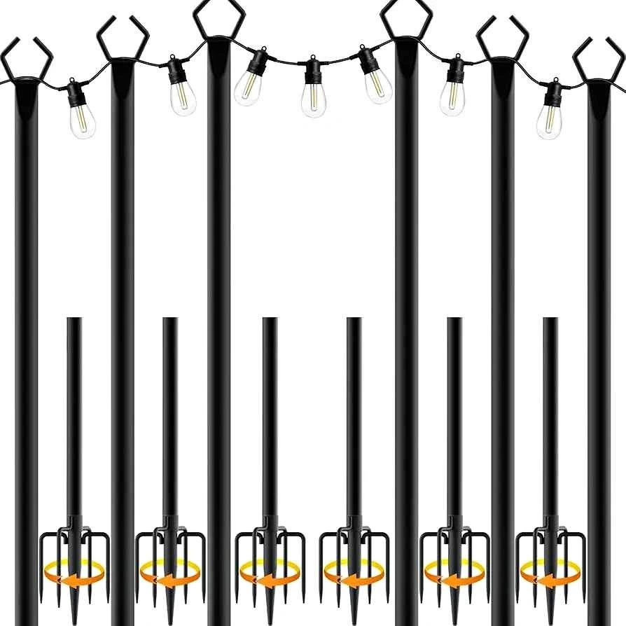 6 Pack 10 ft Heavy Duty Metal String Light Poles
