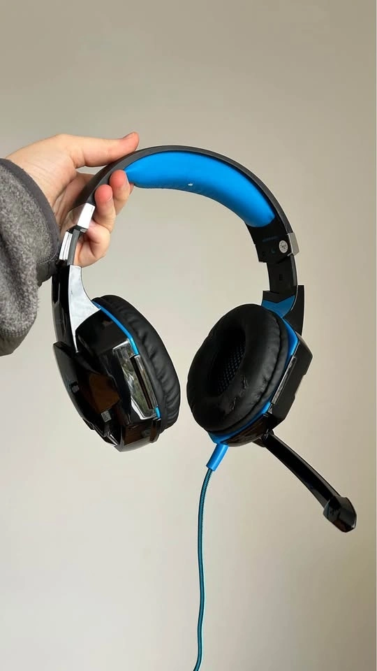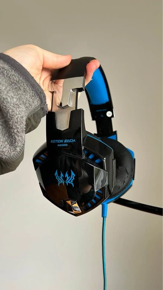 KOTION EACH G2000 Gaming Headset with Noise-Canceling Mic, 50mm Stereo Sound, LED Lights, 3.5mm+USB, Black & Blue, Ergonomic Design, Adjustable Headband, Memory-Protein Earmuffs, Volume.