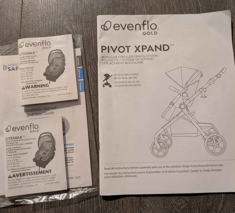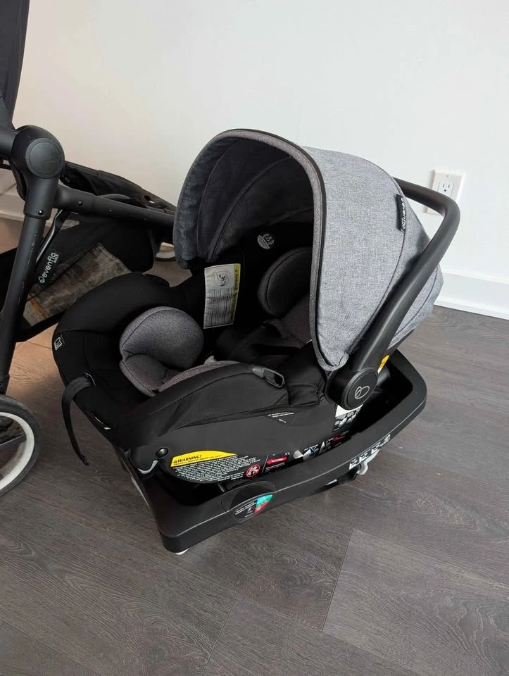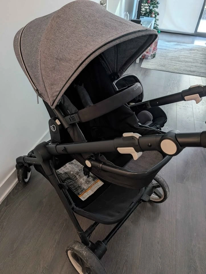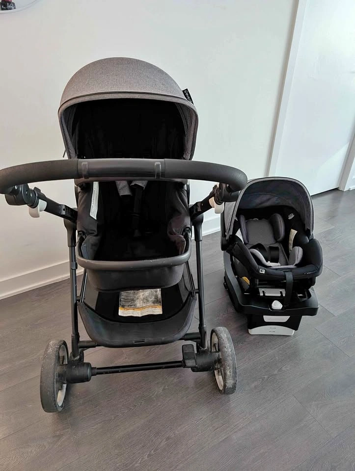 Stroller that can be used as a single or double without any adapters. Comes with the infant car seat (+base) and toddler seat. The sensor safe was never used that's why it is still with the tag.