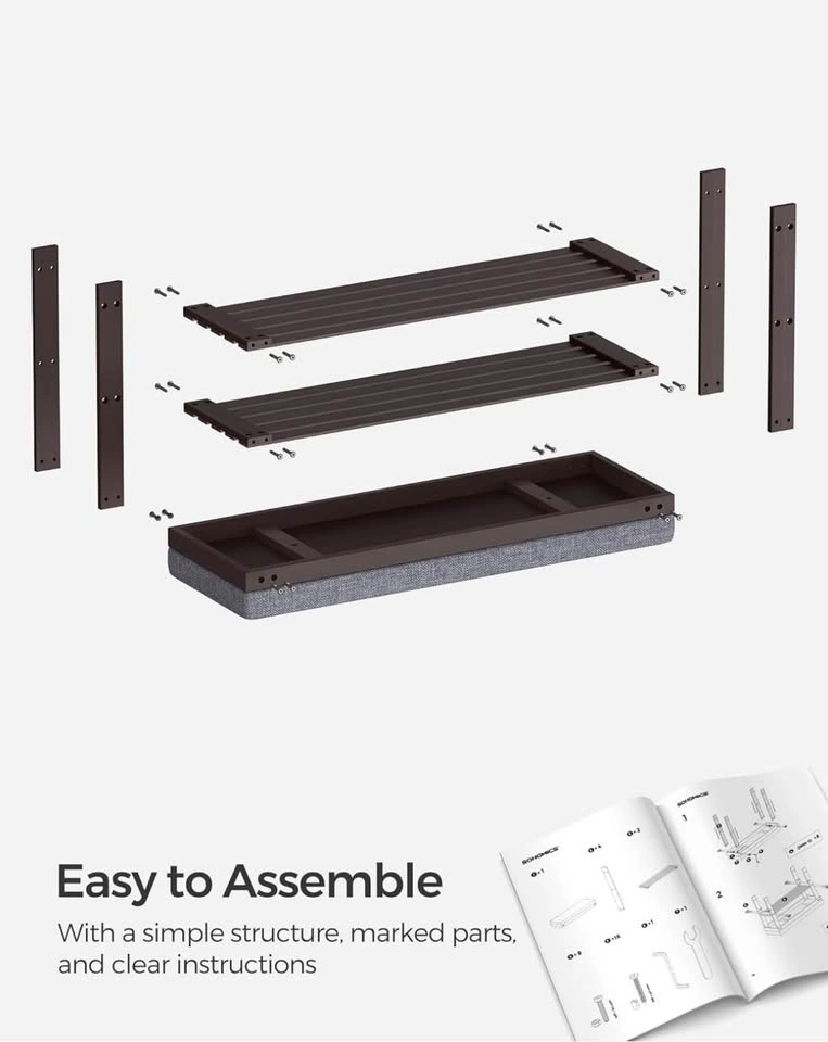 Brand-new SONGMICS Bamboo Shoe Bench — the box has never been opened. Perfect for your entryway, hallway, or mudroom. Sturdy bamboo frame, two spacious tiers for shoes, and a comfortable seat on top. Stylish brown-and-gray finish that fits any home décor.