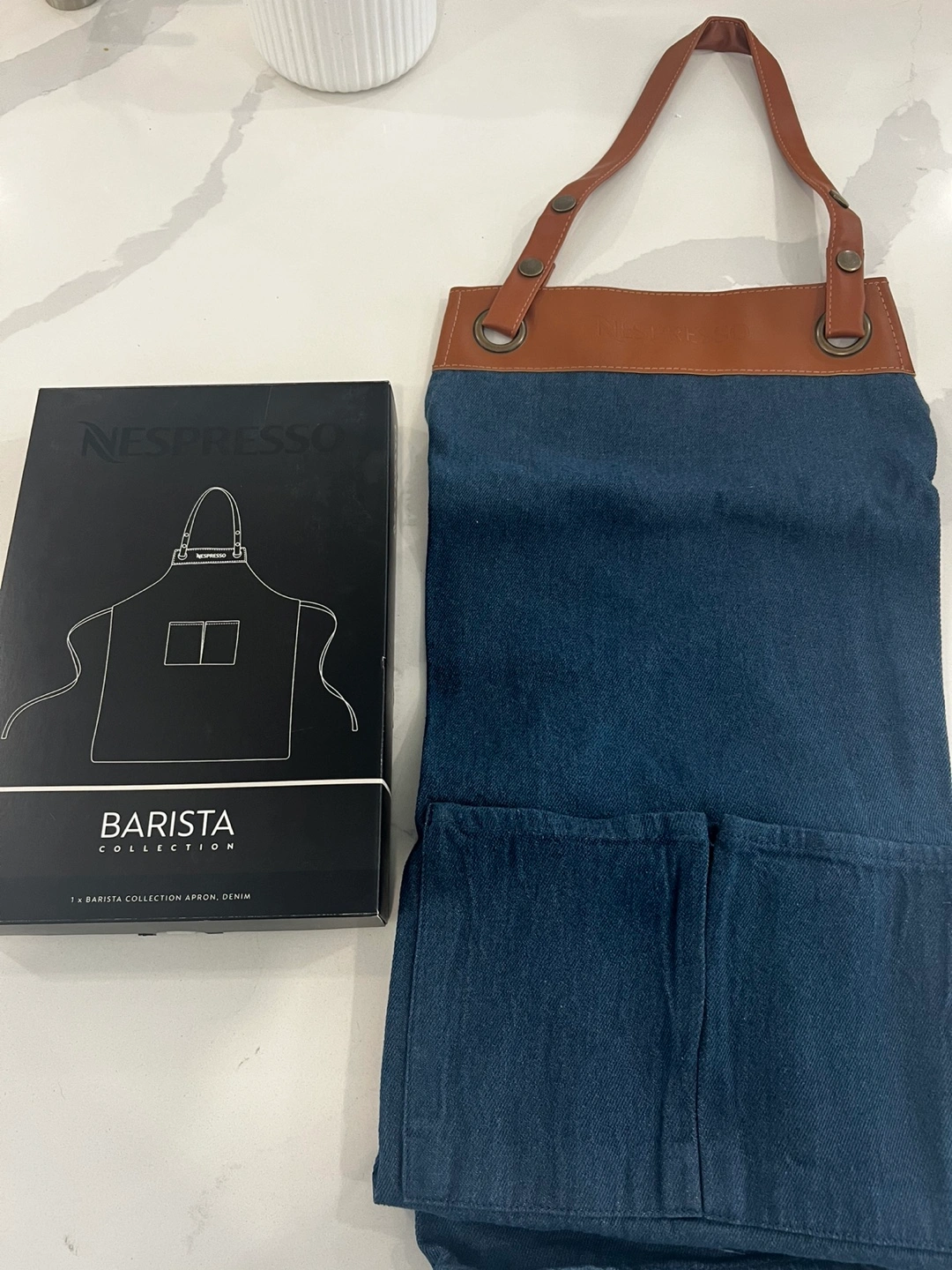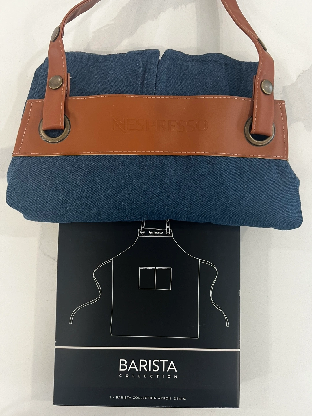 Selling a Nespresso Barista Collection denim apron! It comes with the original box. Perfect for any coffee lover or barista at home