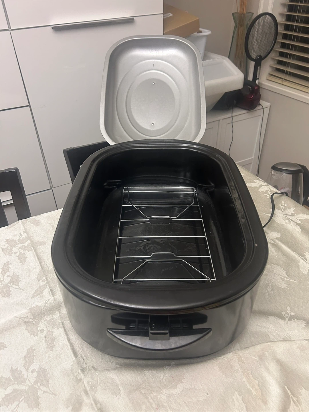 Selling a Roaster Oven! It includes a roasting rack. The heat and electrical have been tested and work great. Adjustable temperature on the side.