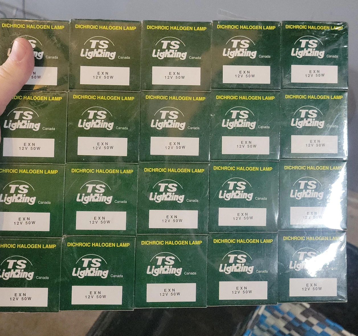 Selling a collection of TS Lighting Dichroic Halogen Lamps. These are EXN 12V 50W bulbs, perfect for various lighting needs. They are in great condition and ready to brighten up your space!