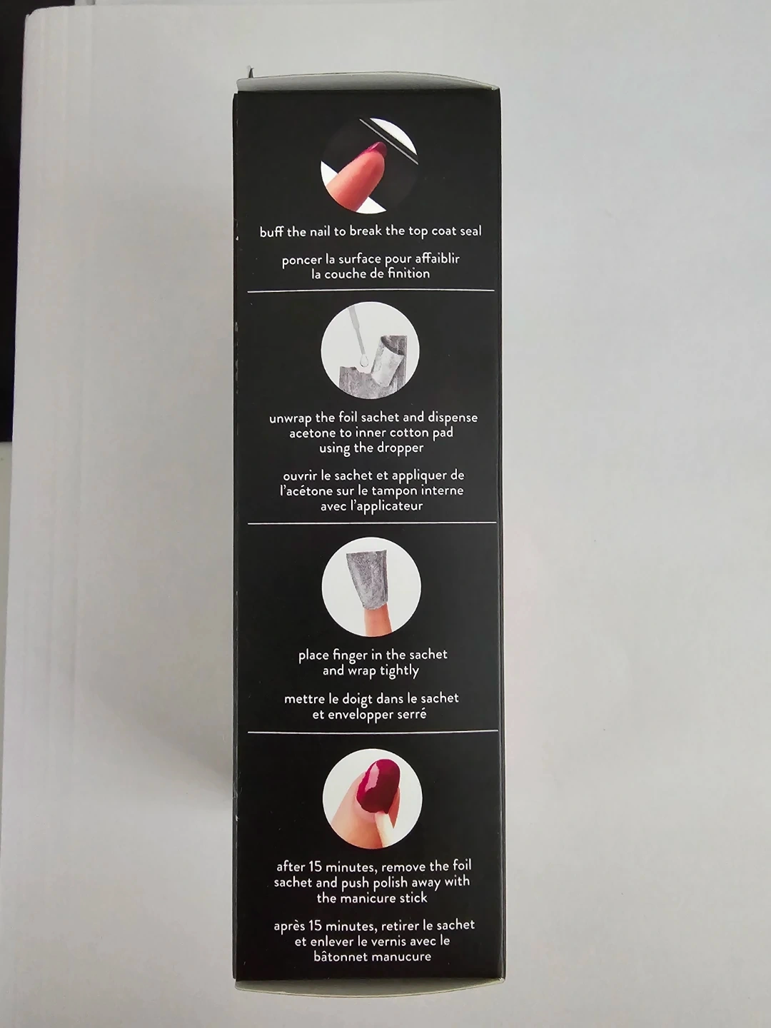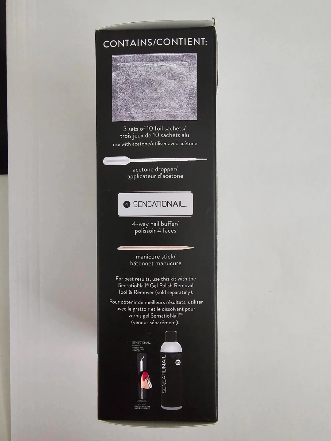 30 Foil Sachets, Acetone dropper, Nail Buffet, and Manicure Stick