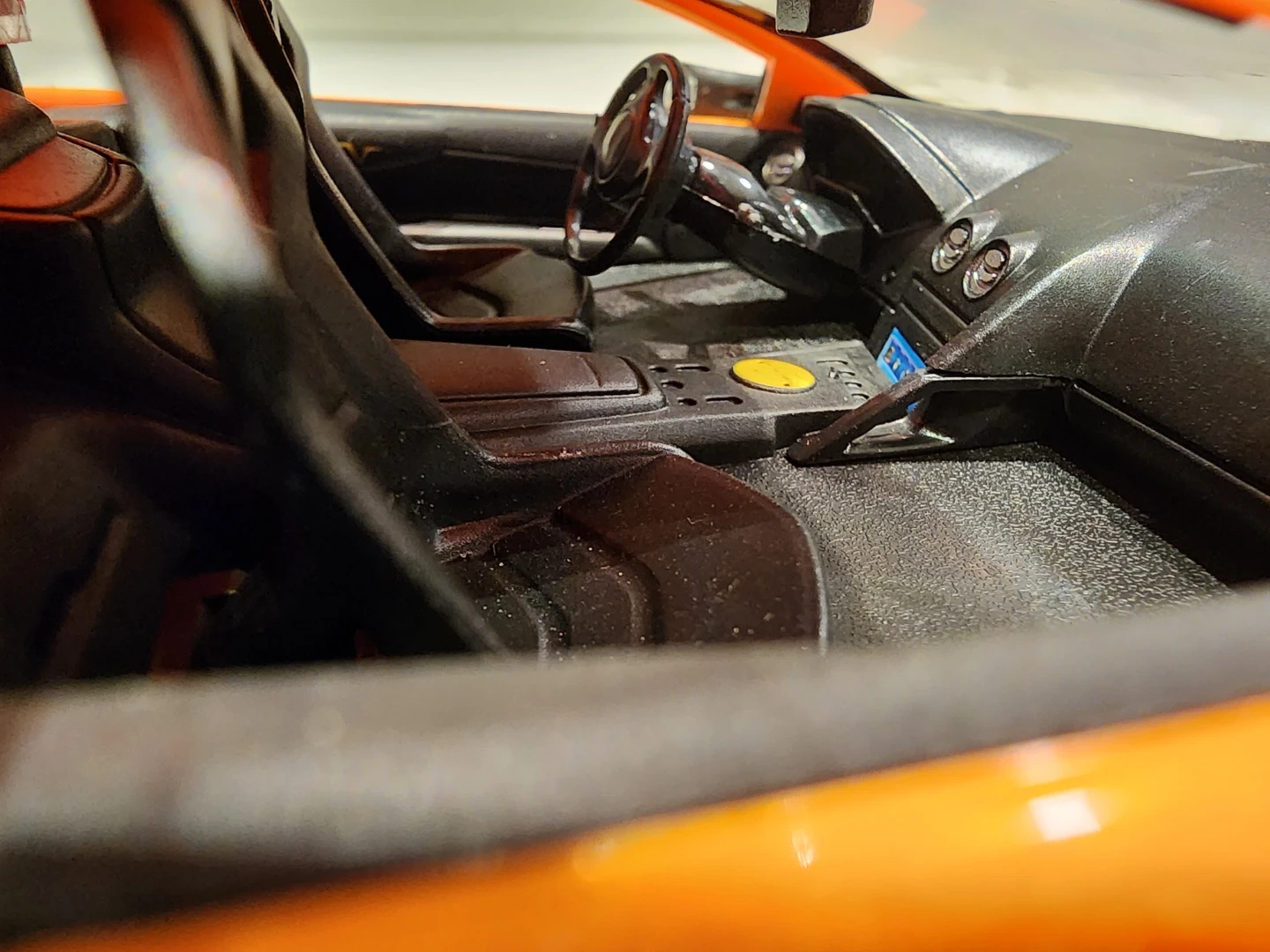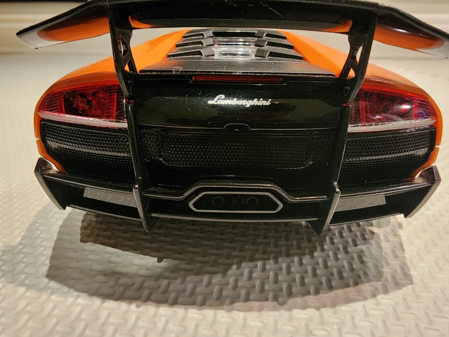 Selling a cool Lamborghini Murcielago SV model car! It's in great shape and would look awesome on display. The colour is orange, and it has a black spoiler and black rims. If you're a car enthusiast or know someone who is, this would make a great addition to their collection
