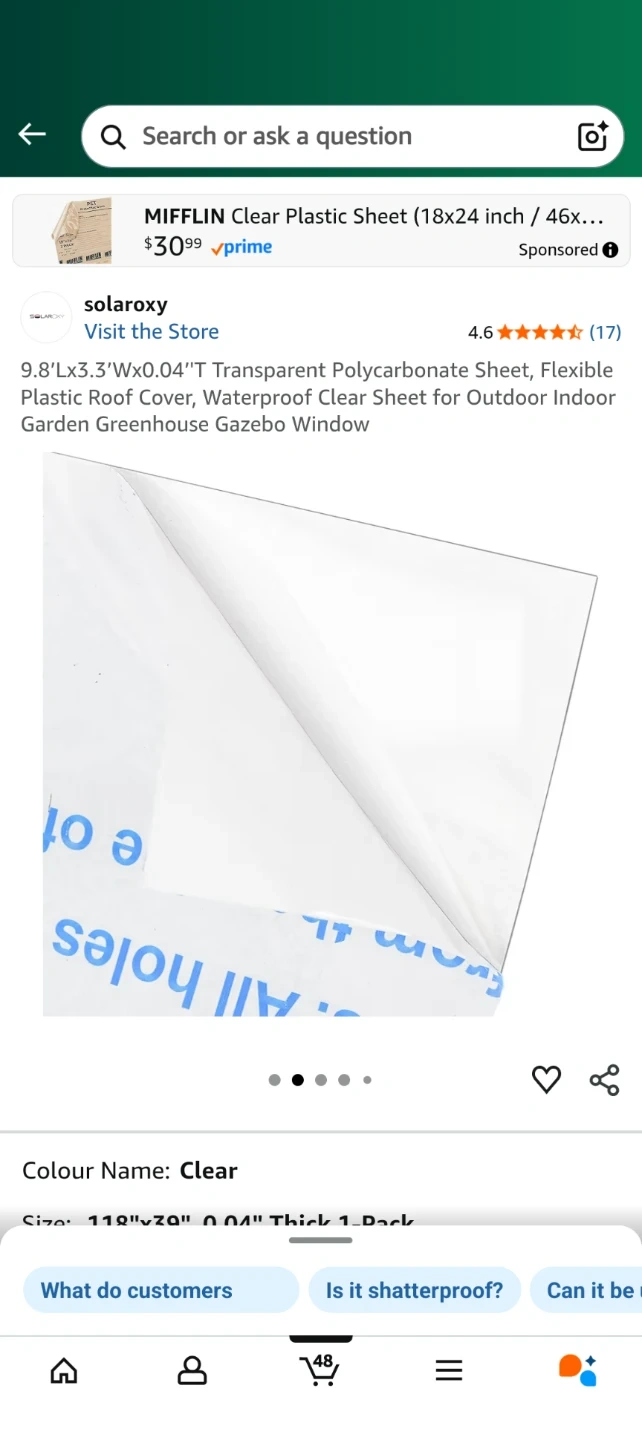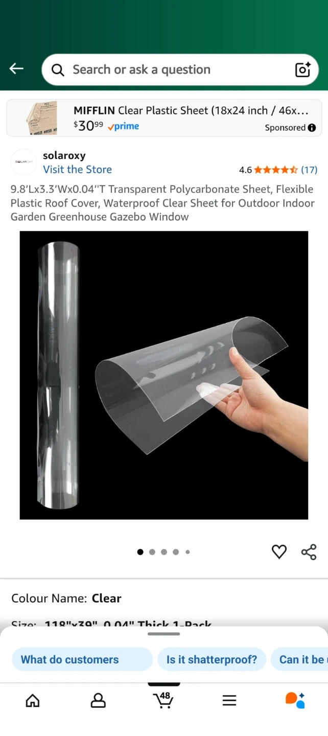 Buy & Sell9.8’Lx3.3’Wx0.04’'T Transparent Polycarbonate Sheet9.8’Lx3.3’Wx0.04’'T Transparent Polycarbonate Sheet$559.8’Lx3.3’Wx0.04’'T Transparent Polycarbonate Sheet, Flexible Plastic Roof Cover, Waterproof Clear New Pick up in Richmond close by Walmart ConditionNewWHERE TO MEETWalmart SupercentreView MapSELLERverifiedEltonW Camble26818 reviews0 chats·0 favorites·1 views