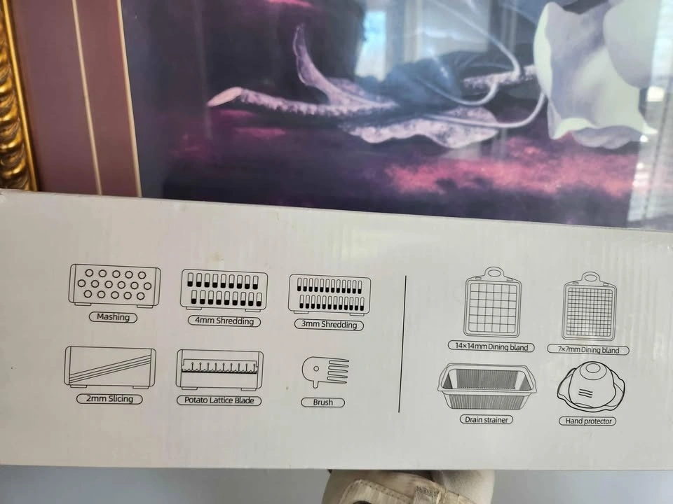 Used a couple of times, works great and the blades are sharp. Dicer, slicer and grater all in one. Moving place need to be out asap. Save time!