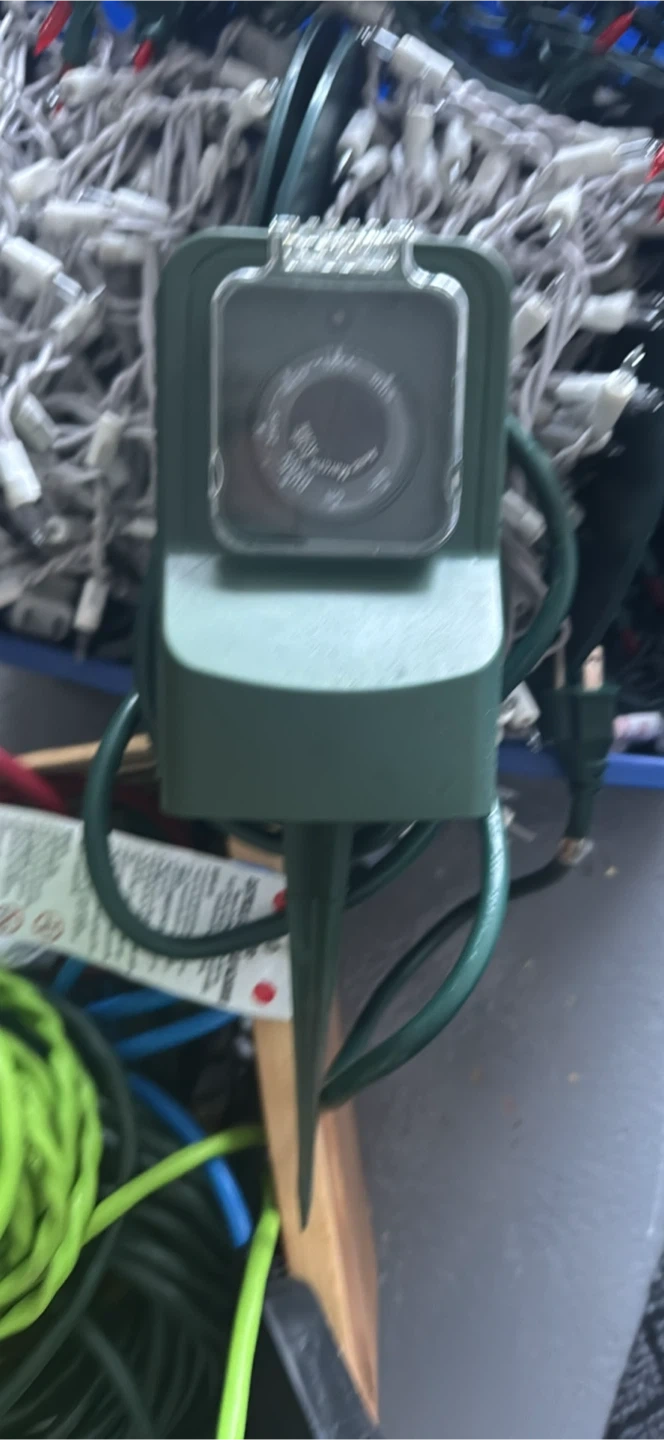 FREE - Christmas lights (working), cables, clips and an outdoor timer with a ground stake. It's perfect for controlling your outdoor lights or decorations. It looks like it's in good condition and ready to use