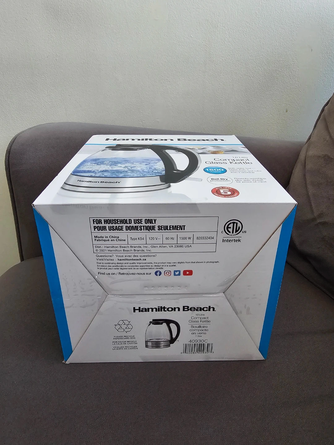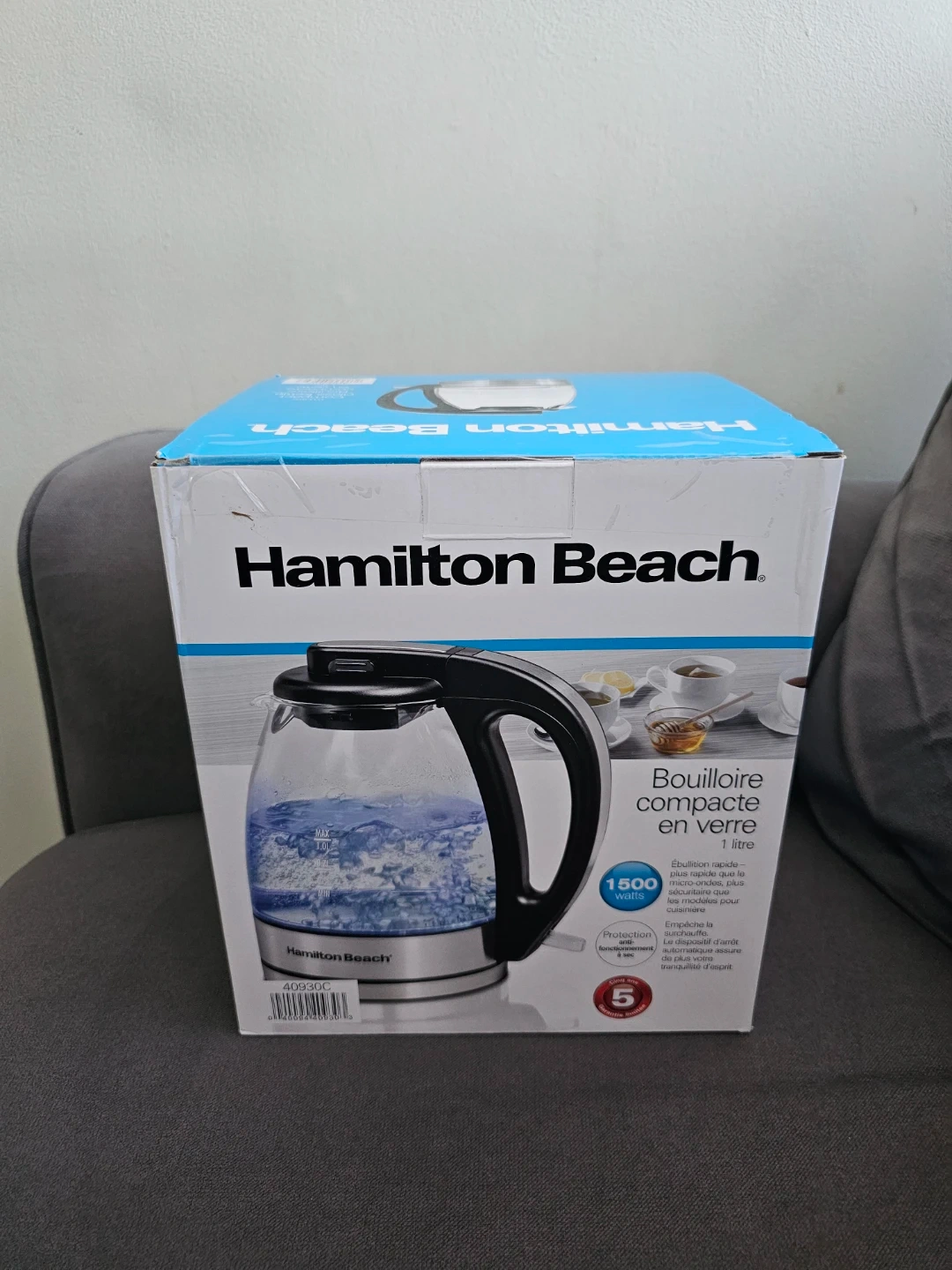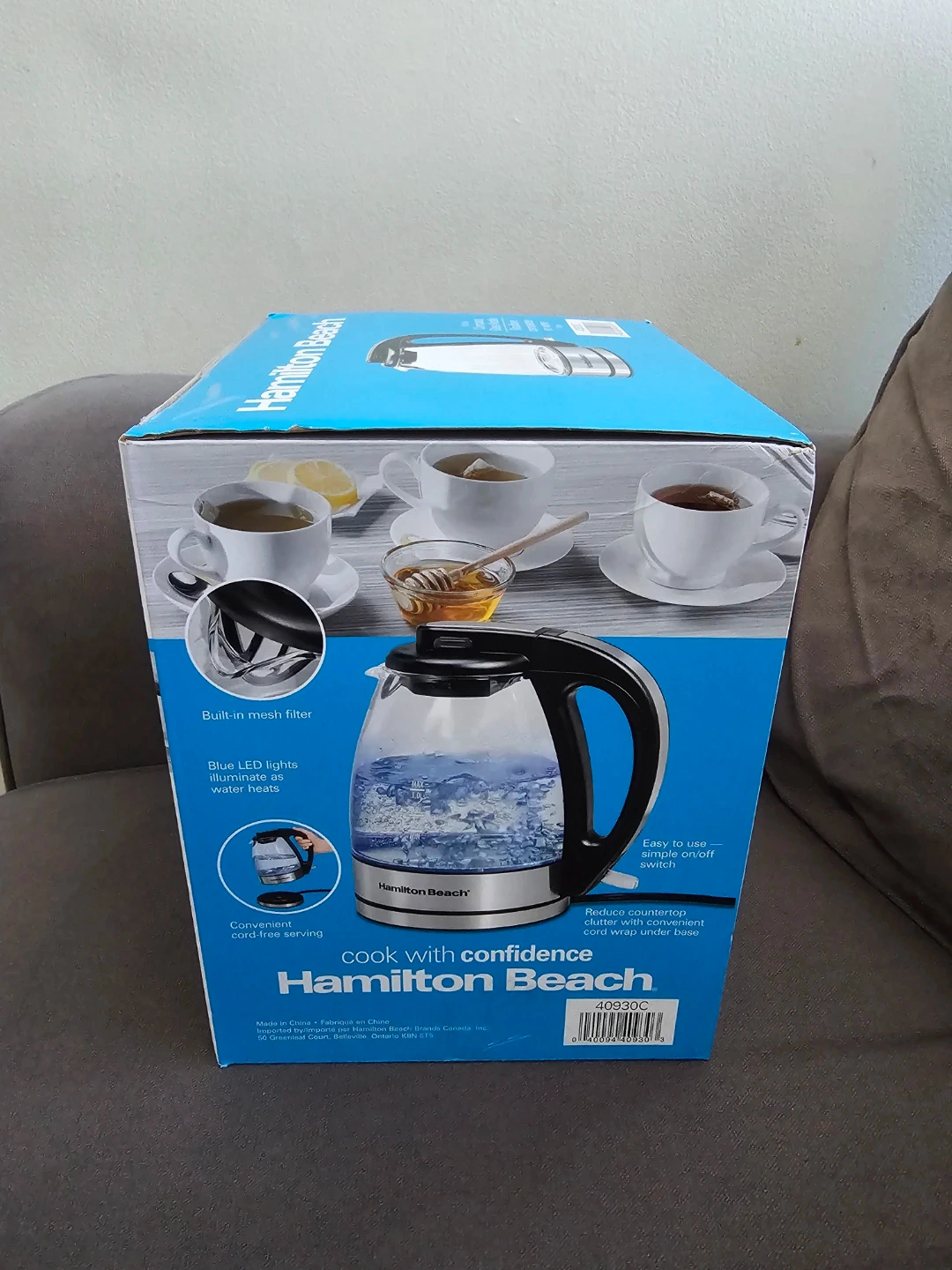 Hamilton Beach Glass Electric Tea Kettle, 1 L, 1500 Watts