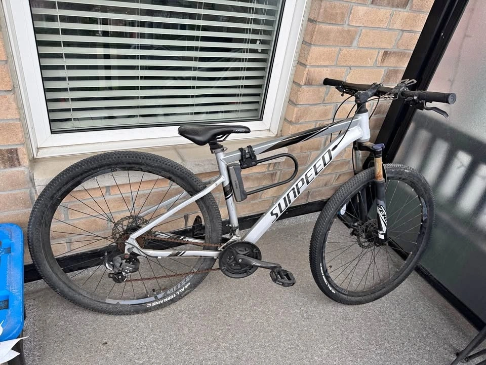 Selling my used Sunpeed Mountain Bike. Needs maintenance and a clean but it works well. Selling because it has been sitting for a while and I don’t ride it anymore. Selling as is. Cash only. Pick up only.