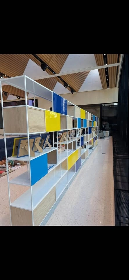 White Powder Coated Steel w Whitewashed oak Cabinet Inserts