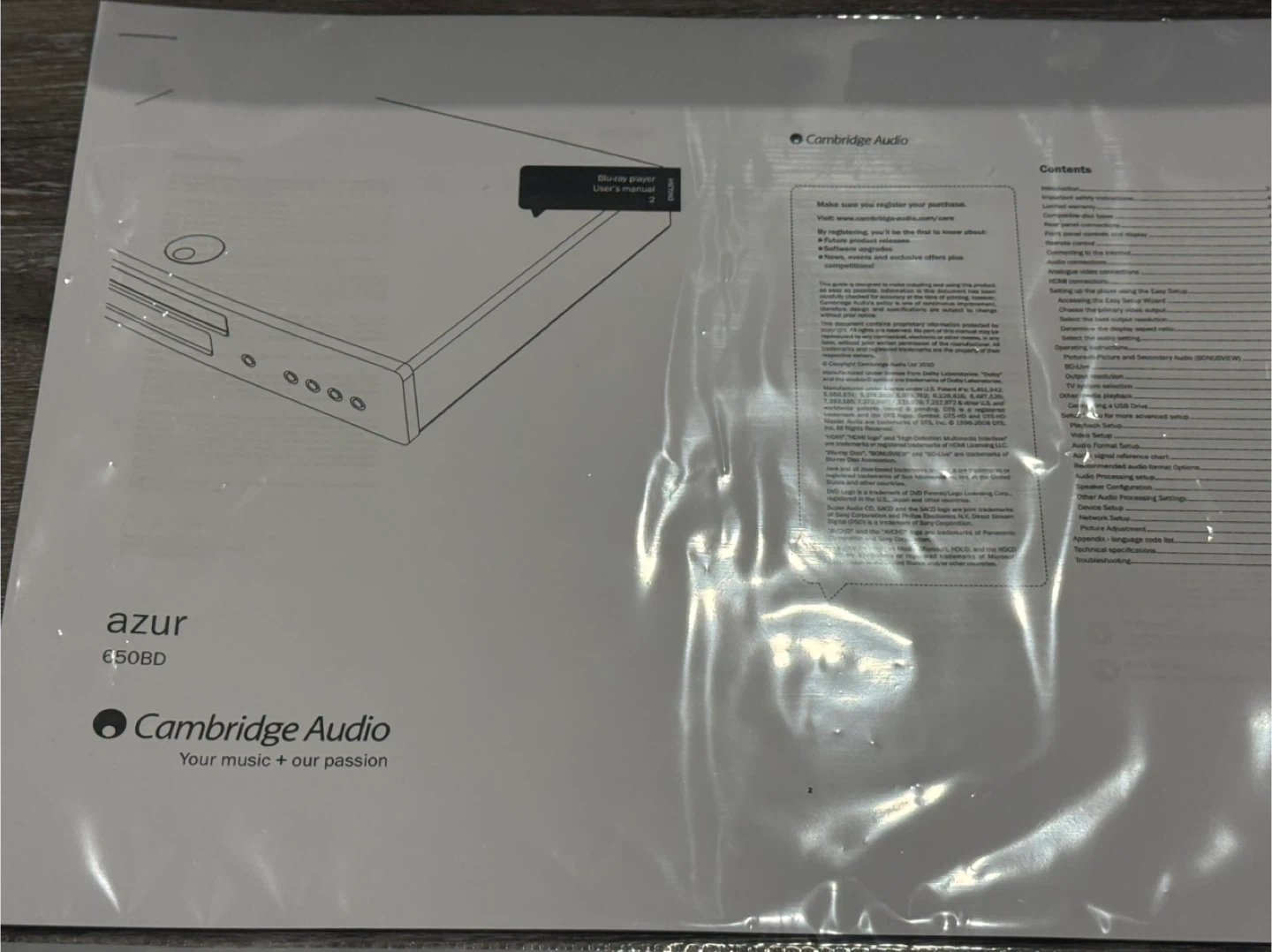 Selling a Cambridge Audio Azur 650BD Blu-ray Disc Player! It comes with the remote control, power cable, and user's manual. Perfect for enjoying your favourite Blu-ray or DVD Movies as well as CD and SACD audio