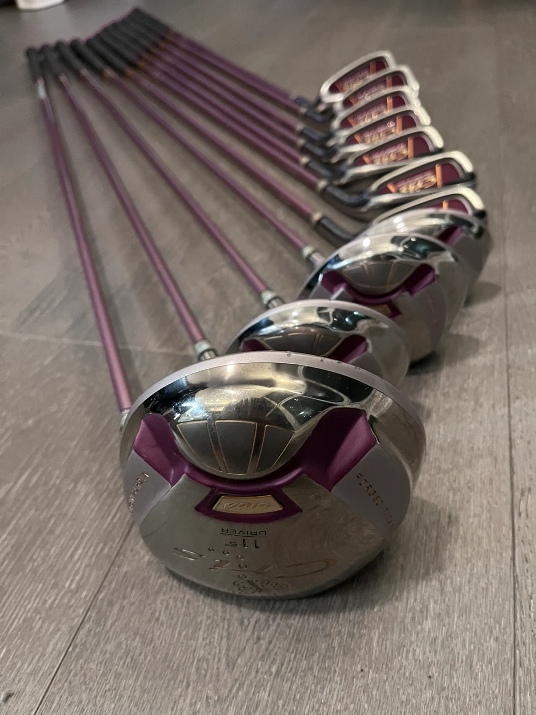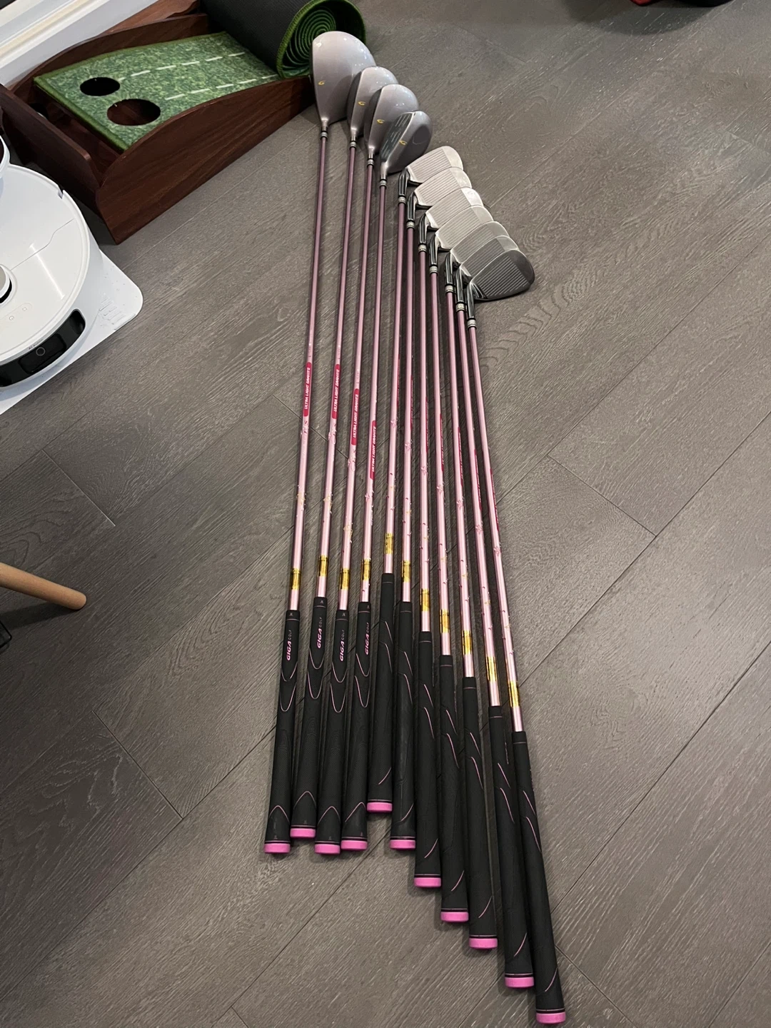 Selling a full set of ladies golf clubs. They feature a stylish pink accent colour. Great for anyone looking to get into golf or upgrade their current set! (Headcovers are included)