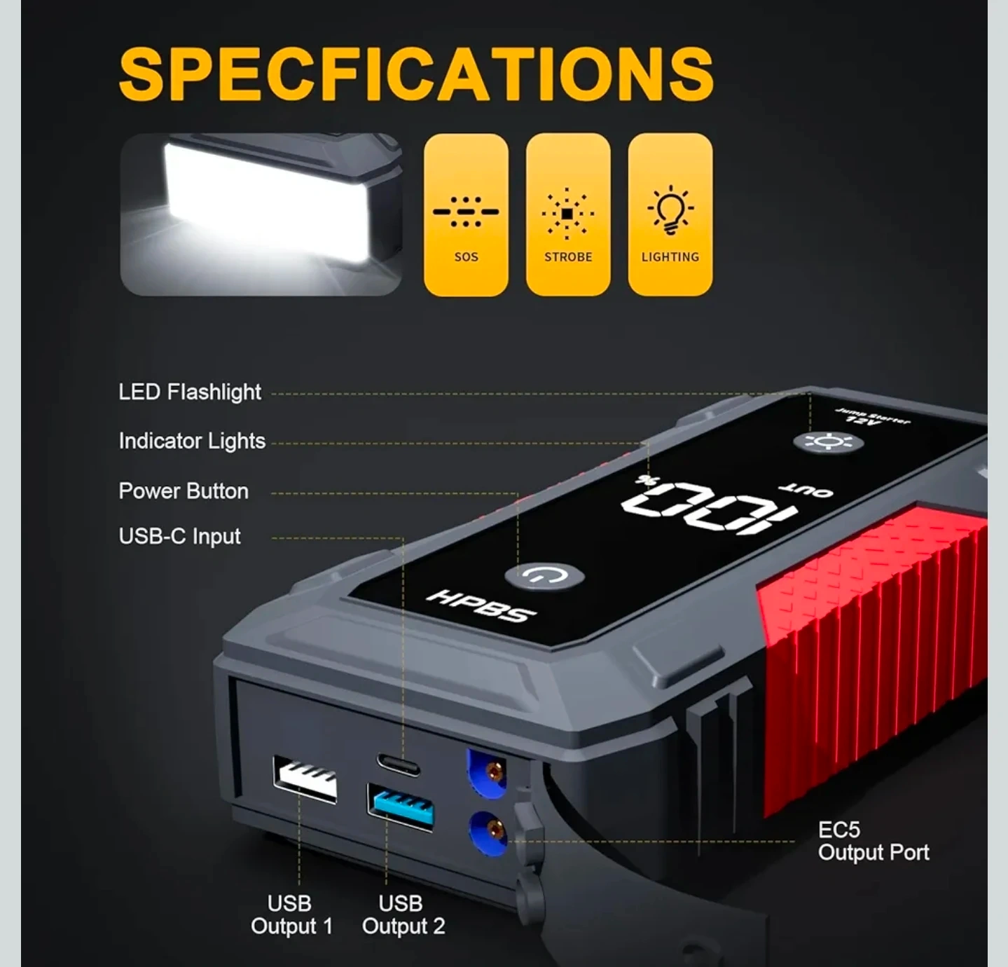 Jump Starter - 5000A Jump Starter Battery Pack for Up to 10.0L Gas and 8.0L Diesel Engines, 12V Portable Car Battery Jump Starter Box with 3.0" LCD Display