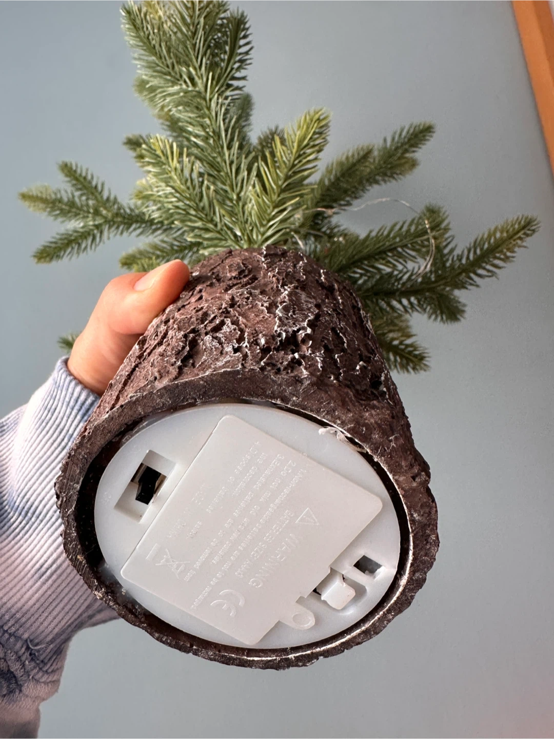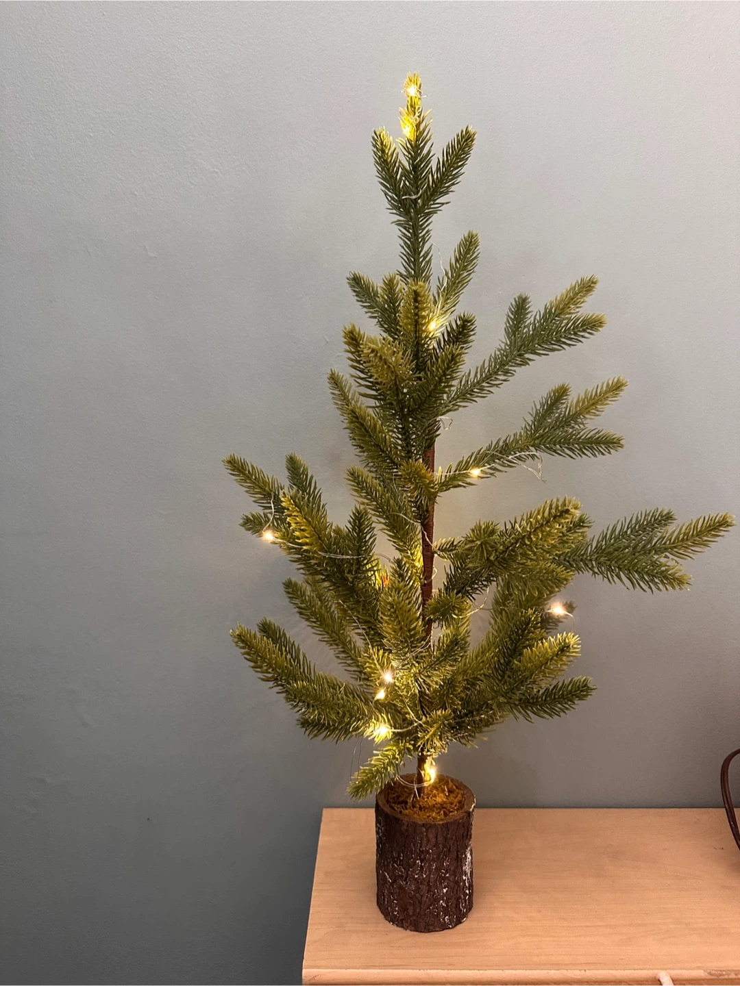I'm selling a cute little artificial Christmas tree, perfect for adding a touch of holiday cheer to a small space. It comes with built-in lights that give off a warm glow. It's in great condition. Takes 3 AAA batteries, not included.
