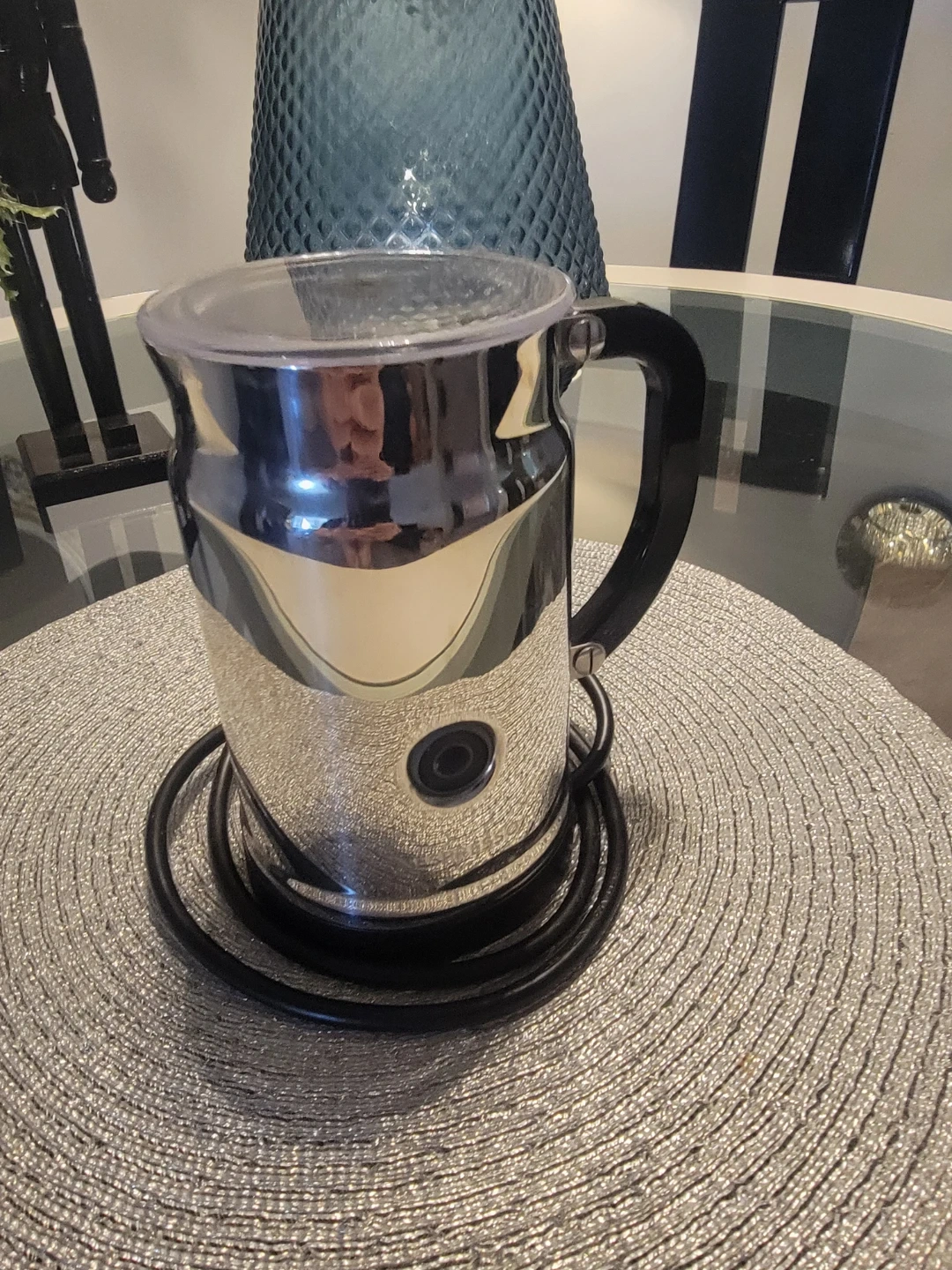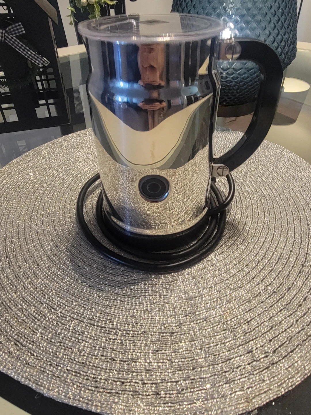 I'm selling a Nespresso Aeroccino milk frother. It's in great condition and ready to make your favourite hot or cold milk-based coffee drinks at home. It's easy to use and clean, making it a perfect addition to your coffee routine