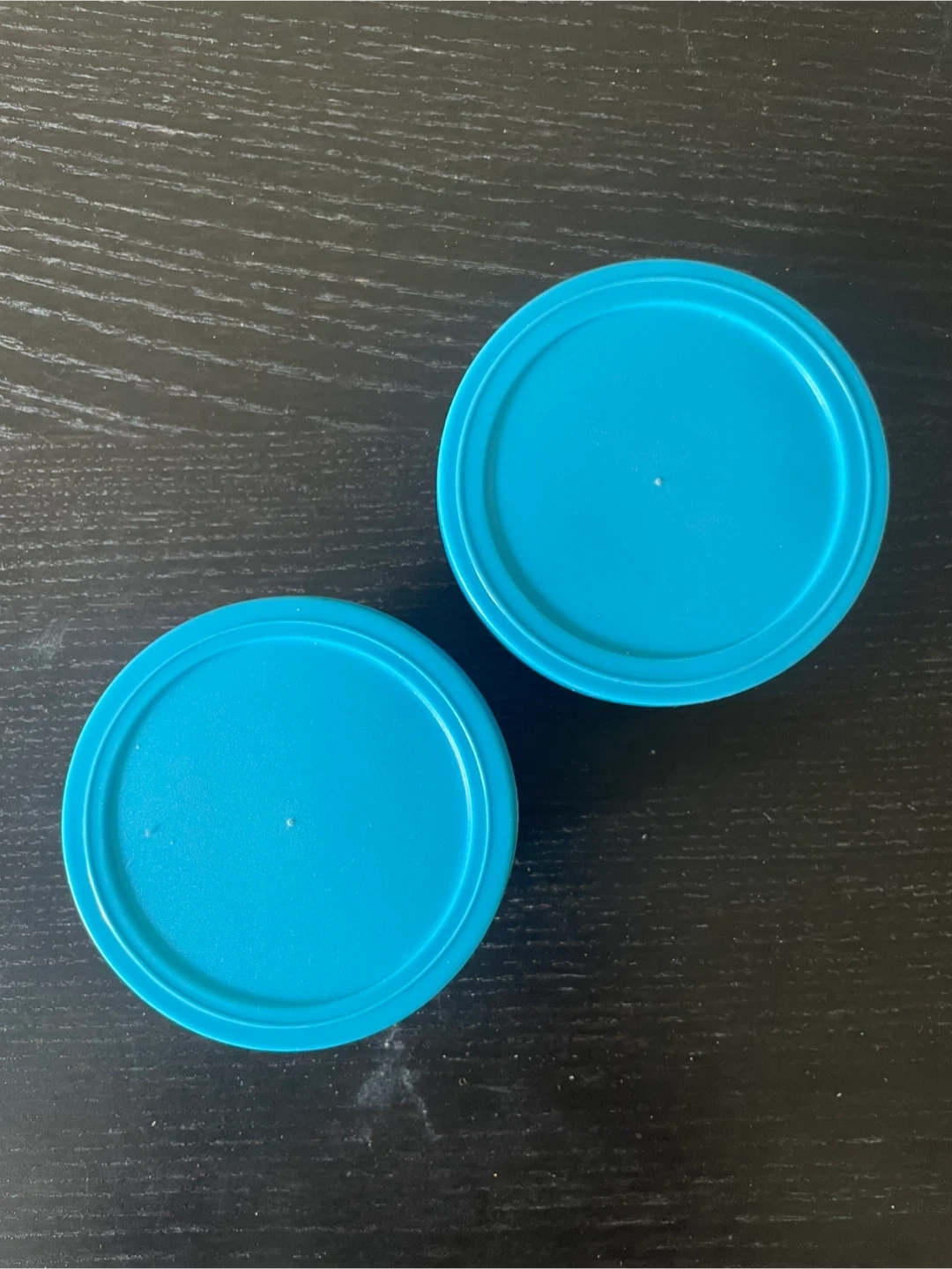 I'm selling a pair of stainless steel food storage containers. They come with bright blue lids, perfect for keeping your food fresh. These containers are great for small amounts!