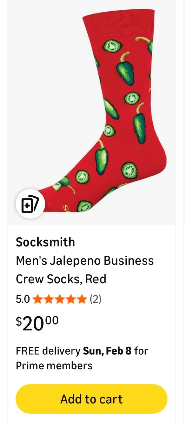 Heat things up with these “hot” jalapeño Men’s Crew length socks!