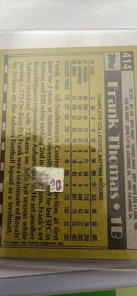 I have the Sammie Sosa as well as Frank Thomas rookie cards that I would love for being in a home that will not keep them in a Rubbermaid. The Sosa card is actually a birthday card, which is worth significantly more. Let me know if you have any questions, they can be picked up around Wellington and seminary, 60657.