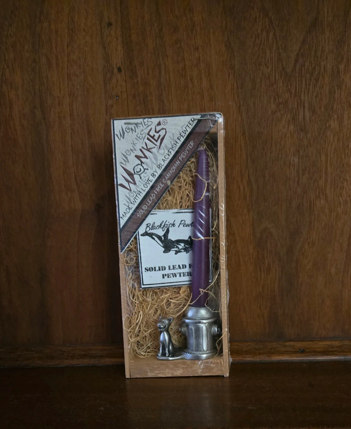 Selling a brand new Wonkies candle holder set! It's made with love by Blackfish Pewter, using solid lead-free Canadian pewter. Comes in the original box and packaging